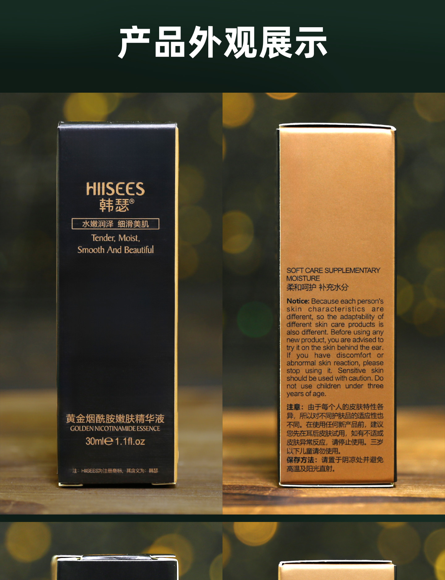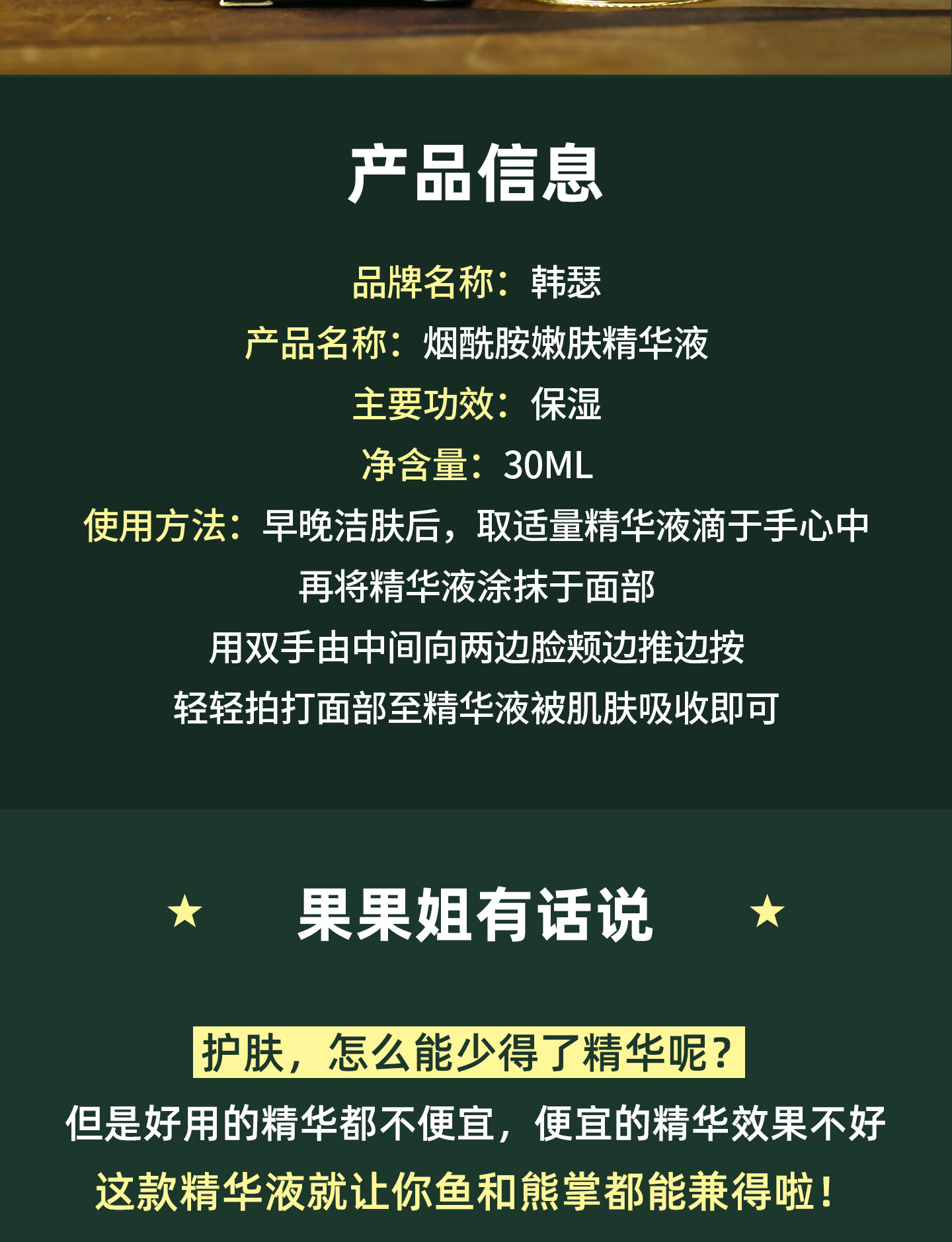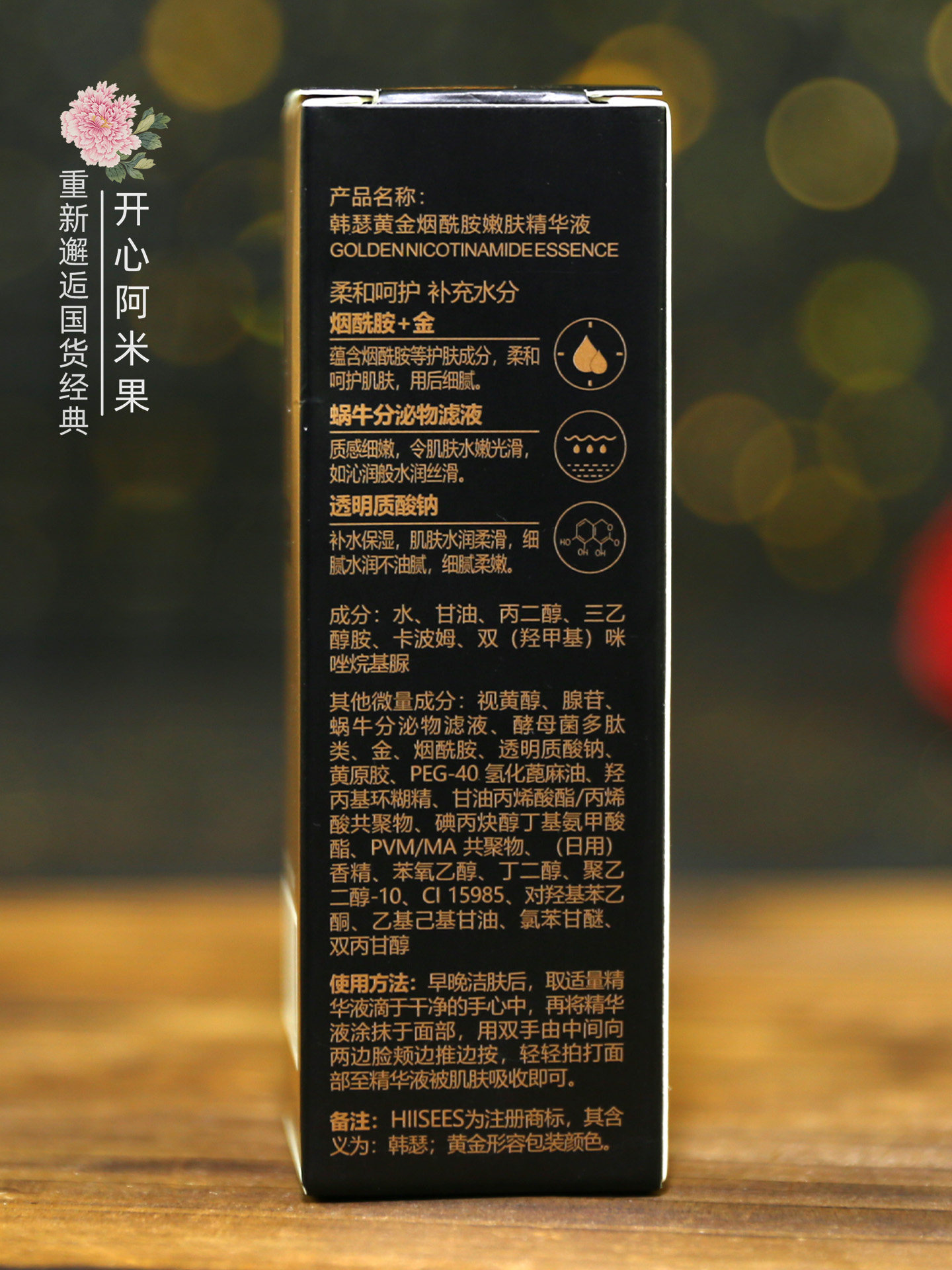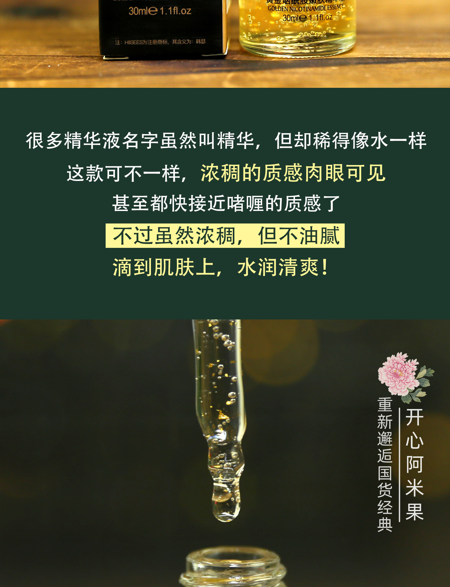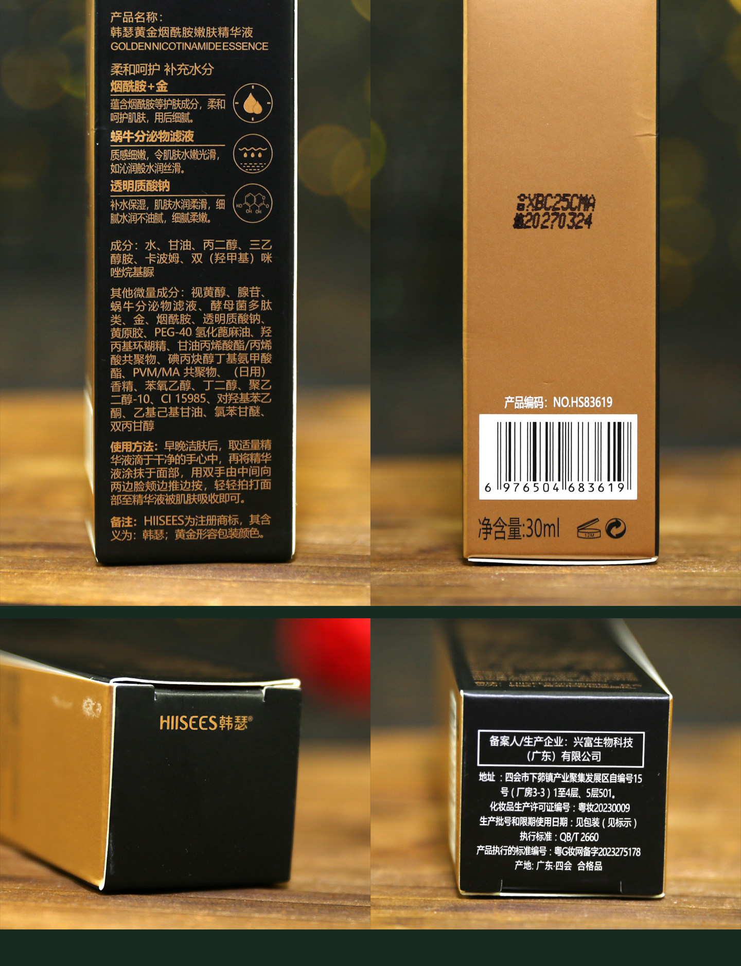 韩瑟 Золотая увлажняющая сыворотка содержит никотиновую кислоту для лица для ухода за кожей, омоложение кожи, 30 мл