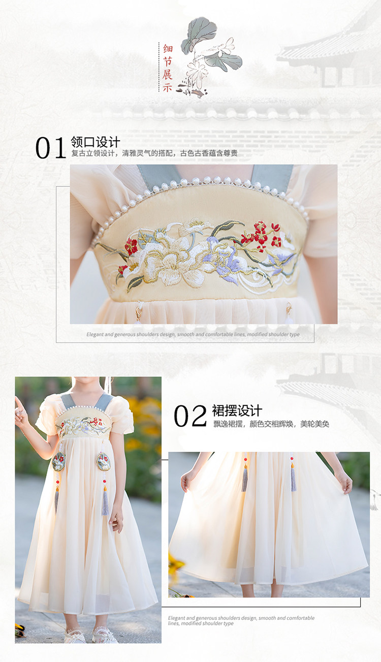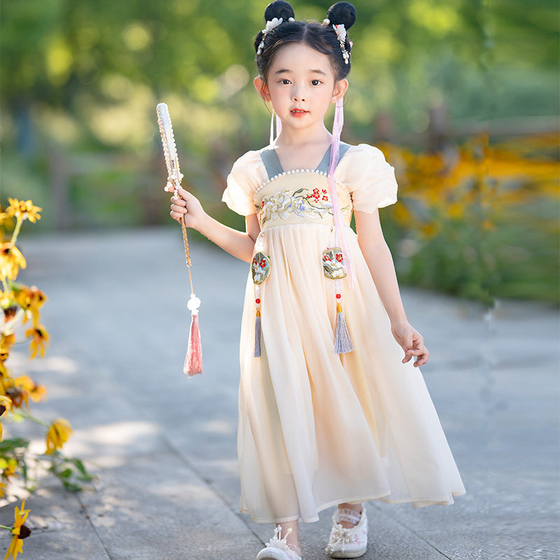 Летнее платье, юбка, детский наряд маленькой принцессы, ханьфу, китайский стиль, детская одежда