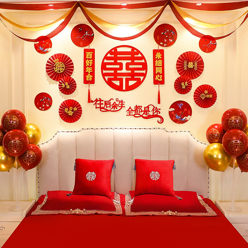 Свадебная компоновка набор свадебных украшений мужской новый дом женская спальня спальня спальня спальня кровати гостиная тянуть цветы свадебные принадлежности