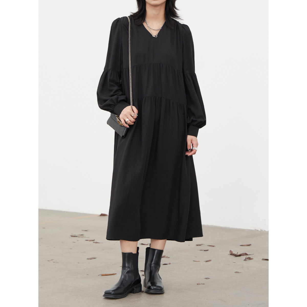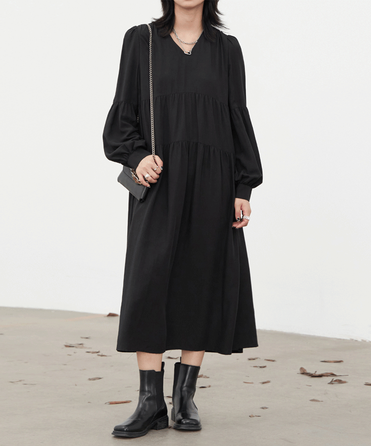 Осенний лонгслив, нарукавники, платье, 2022, свободный крой, V-образный вырез