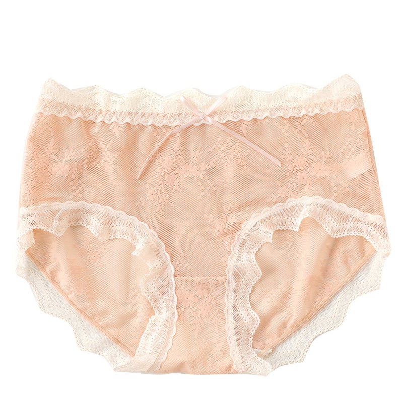 Сливочные кружевные трусы, милые сексуальные дышащие штаны с бантиком, высокая талия