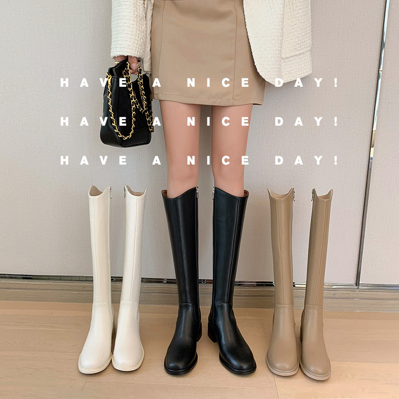 左樱先生 Средство для похудения!Супер простые и универсальные однотонные высокие сапоги для ранней осени, рыцарские сапоги на толстом каблуке с круглой головкой