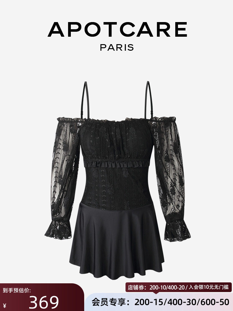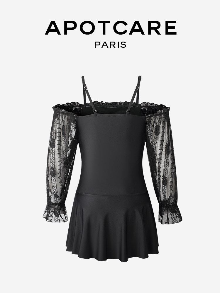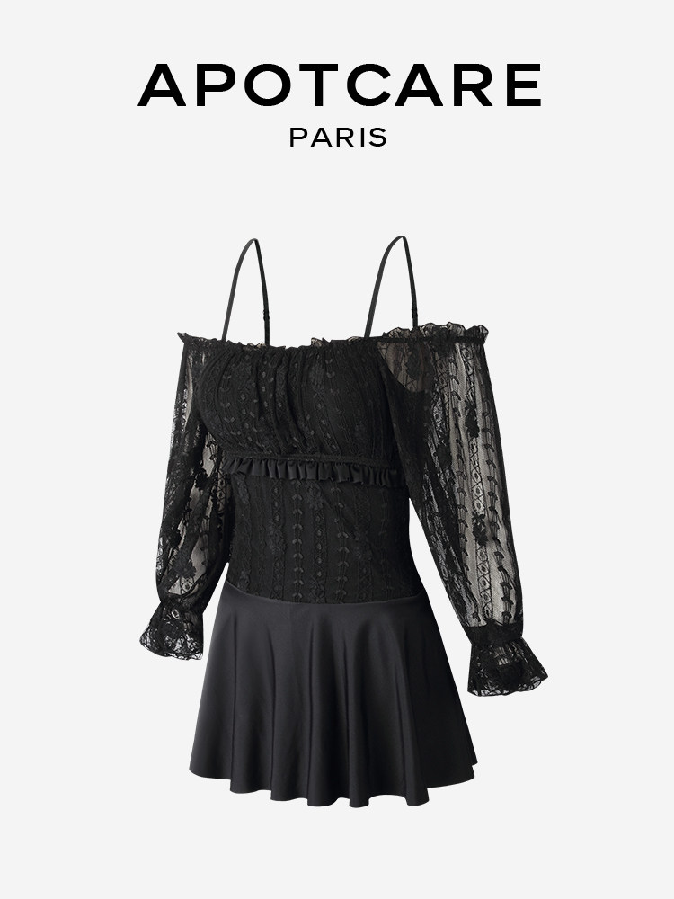 Черный кружевной комбинезон, купальник, лонгслив, открытые плечи