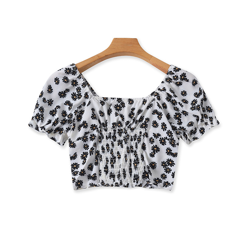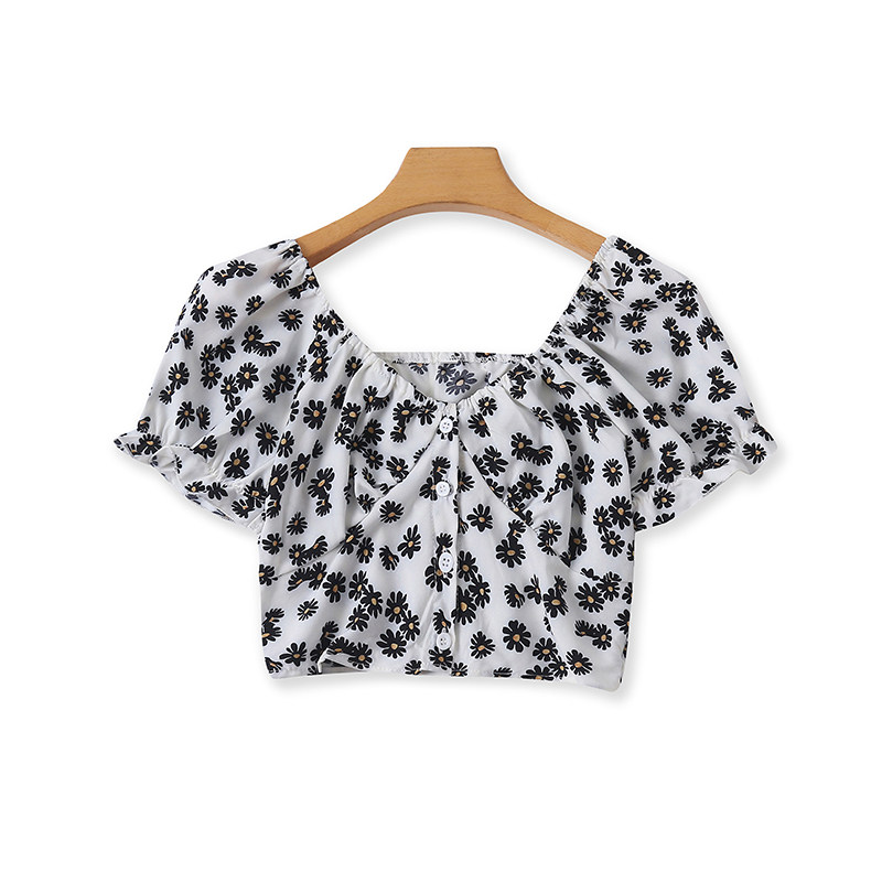 Короткий летний приятный телу кардиган, цветочный принт, рукава фонарики, облегающий крой