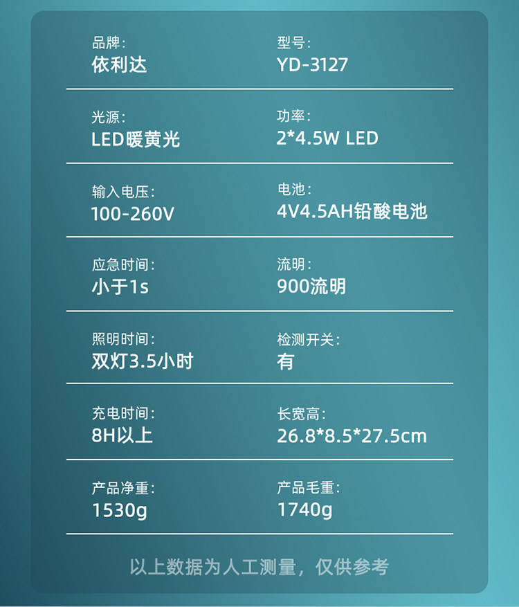 Иллида 3127 Сильная светлая супер ярко -яркая зарядка желтого света. Аварийный свет.