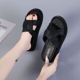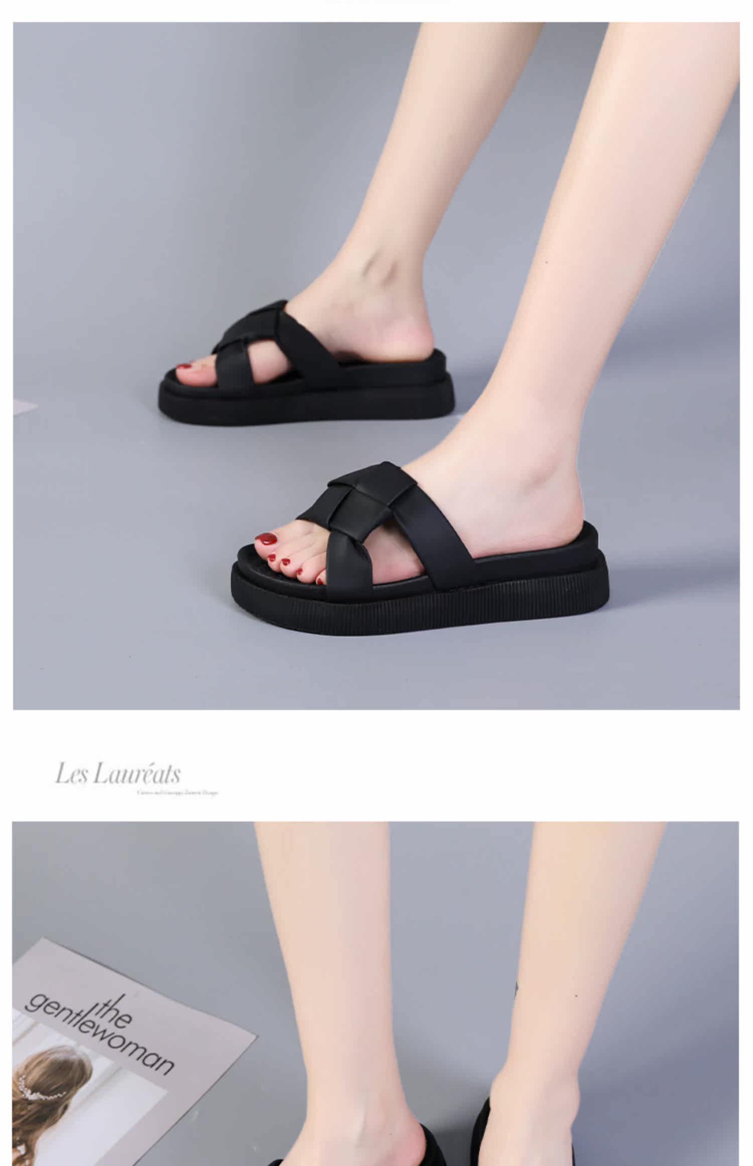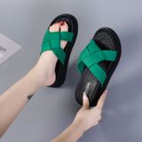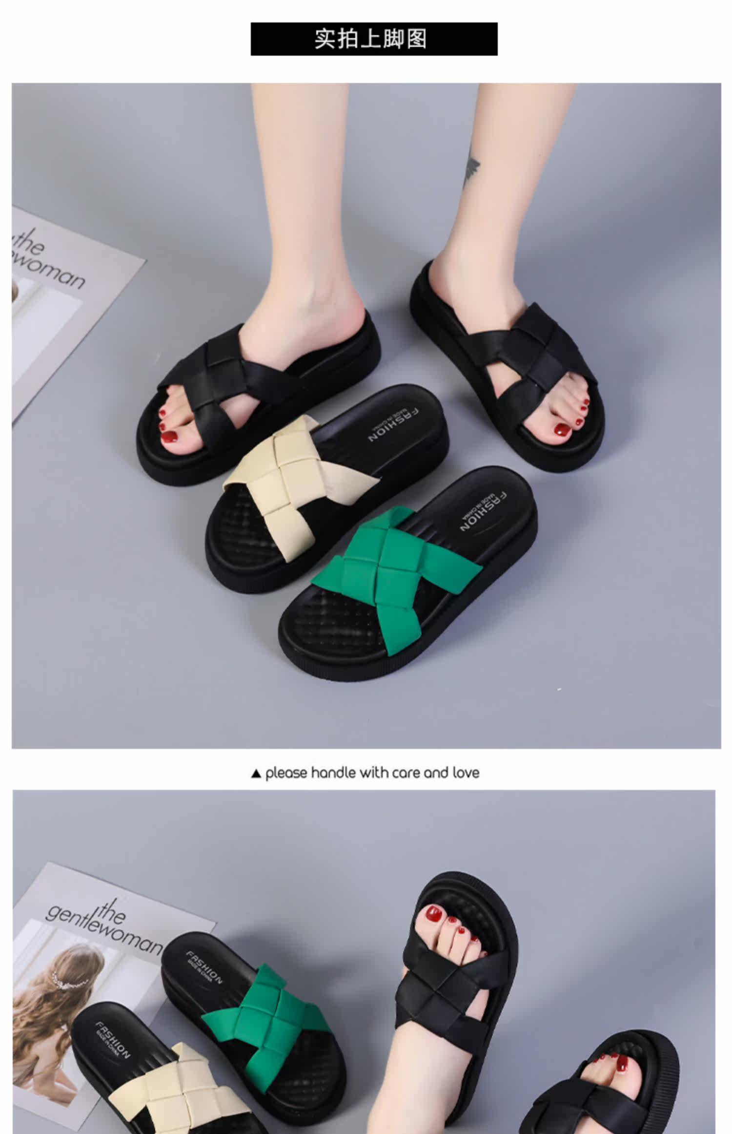 Летняя обувь, модные плетеные слайдеры на платформе, комфортные тапочки
