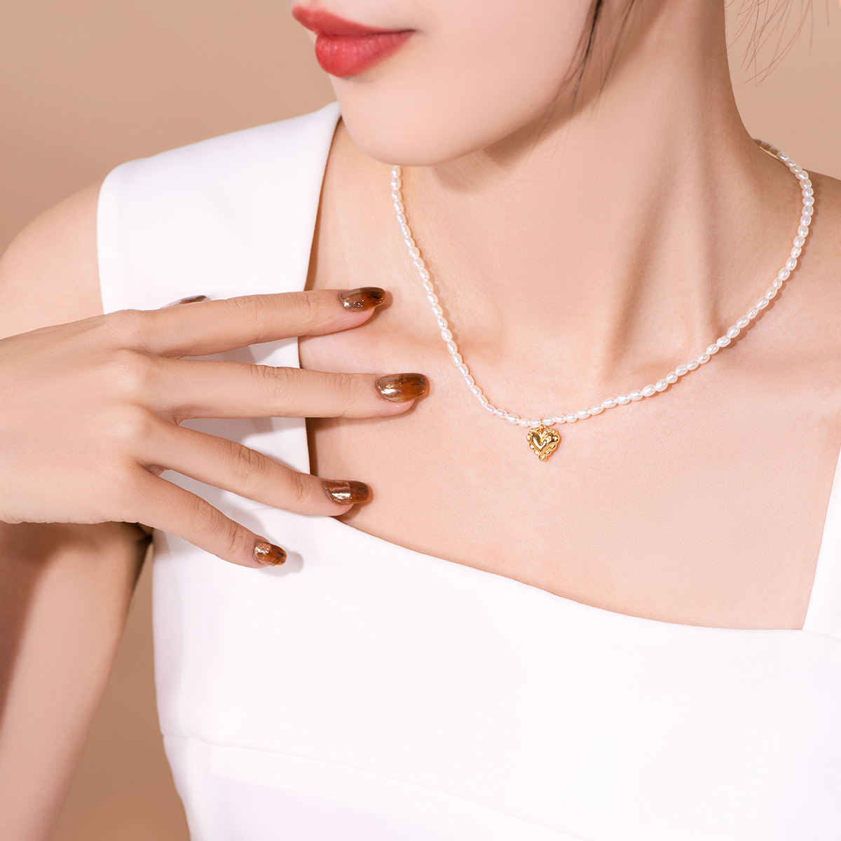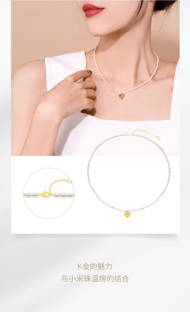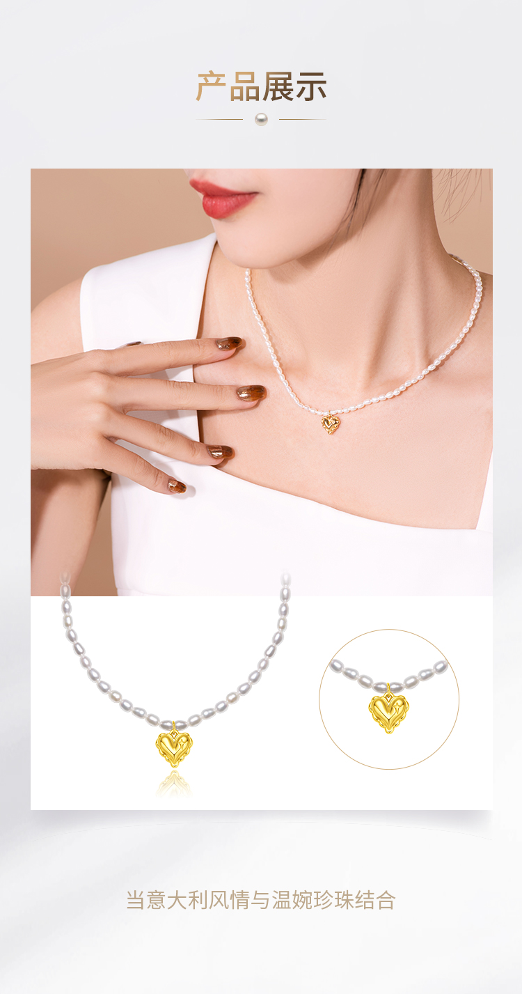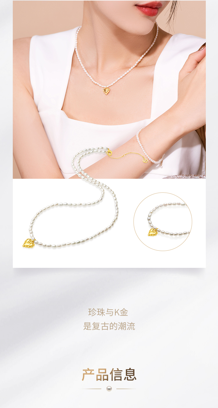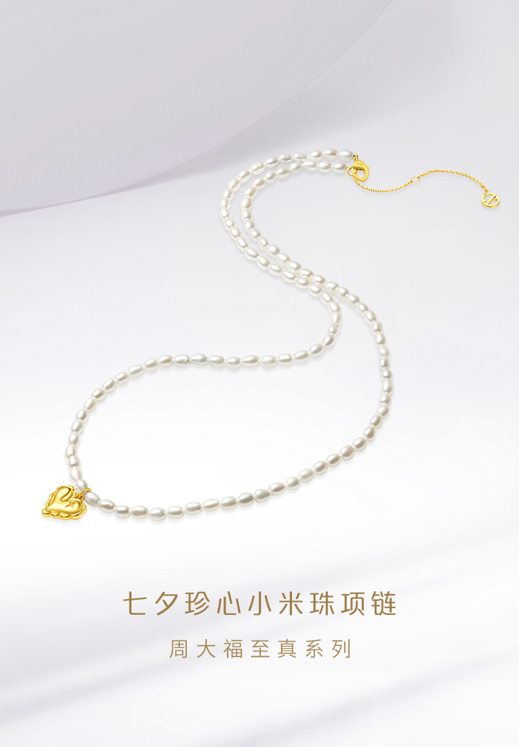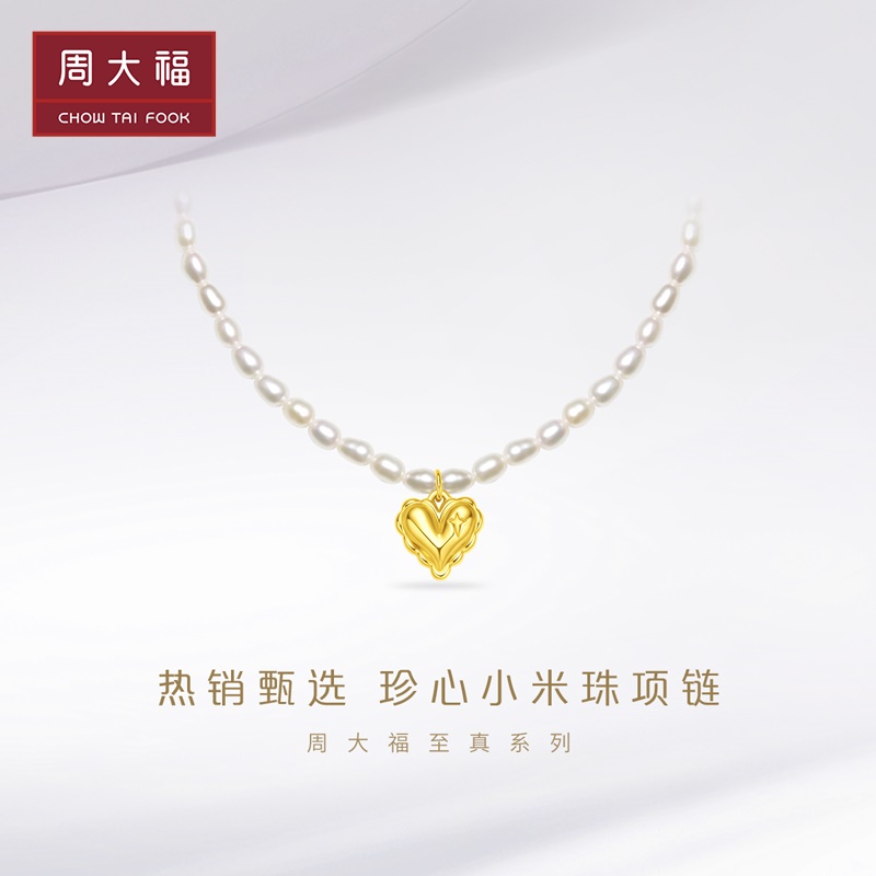 周大福 Ожерелье из жемчуга для друга, простой и элегантный дизайн, золото 750 пробы, подарок для девушки