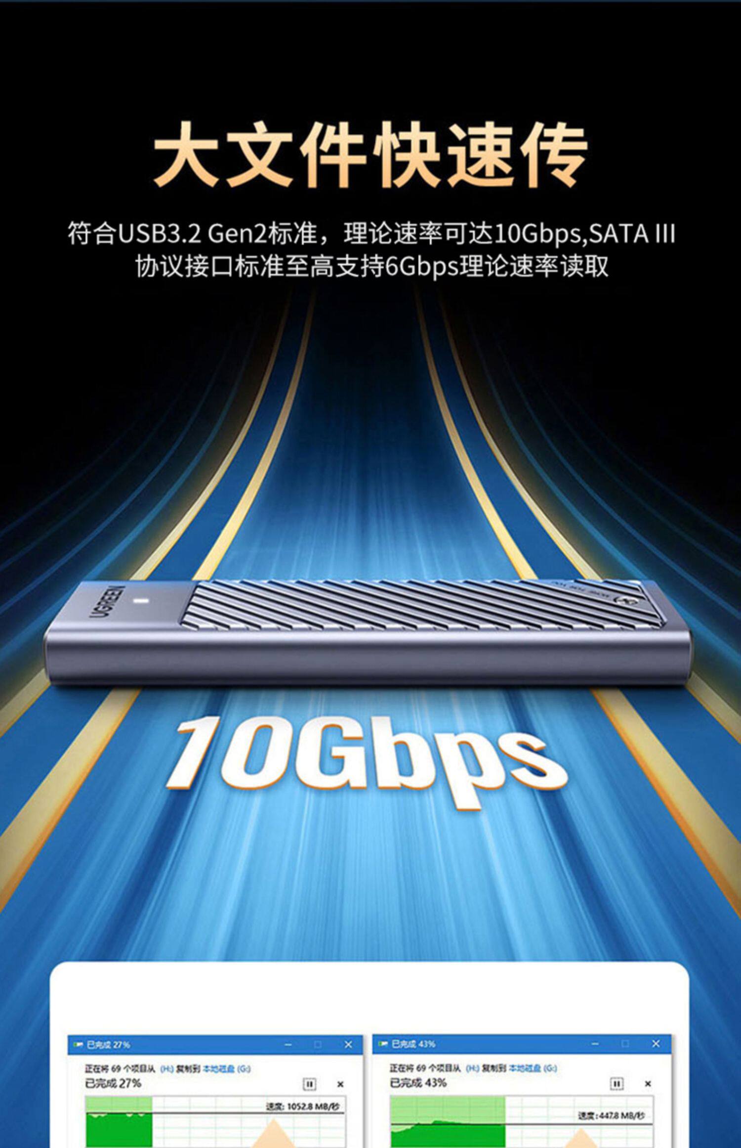 Зеленая федерация м2 твердое твердый дисковый ящик M.2 Lightning 3nvme/SATA Двойной протокол ноутбук Мобильный SSD Внешняя коробка
