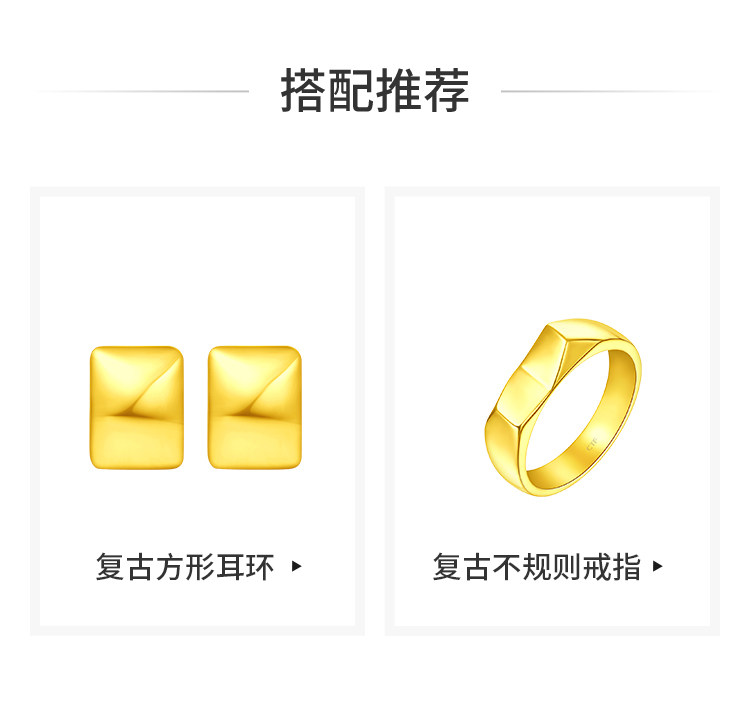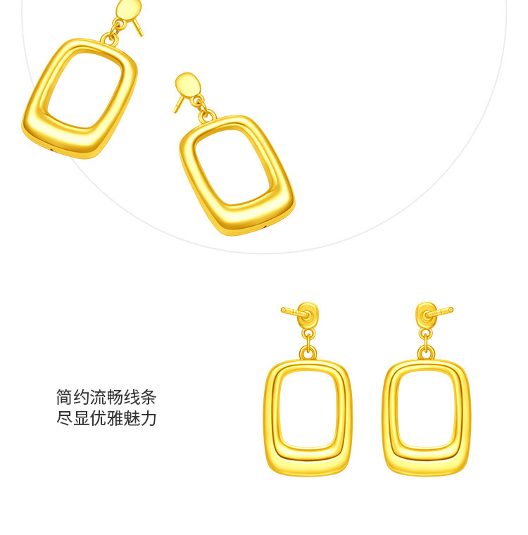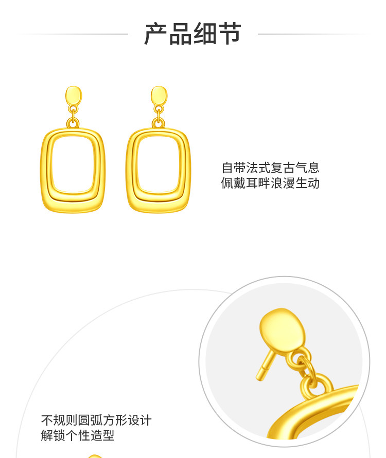 周大福 Модные ретро квадратные золотые серьги