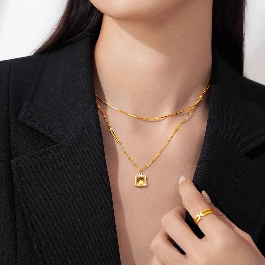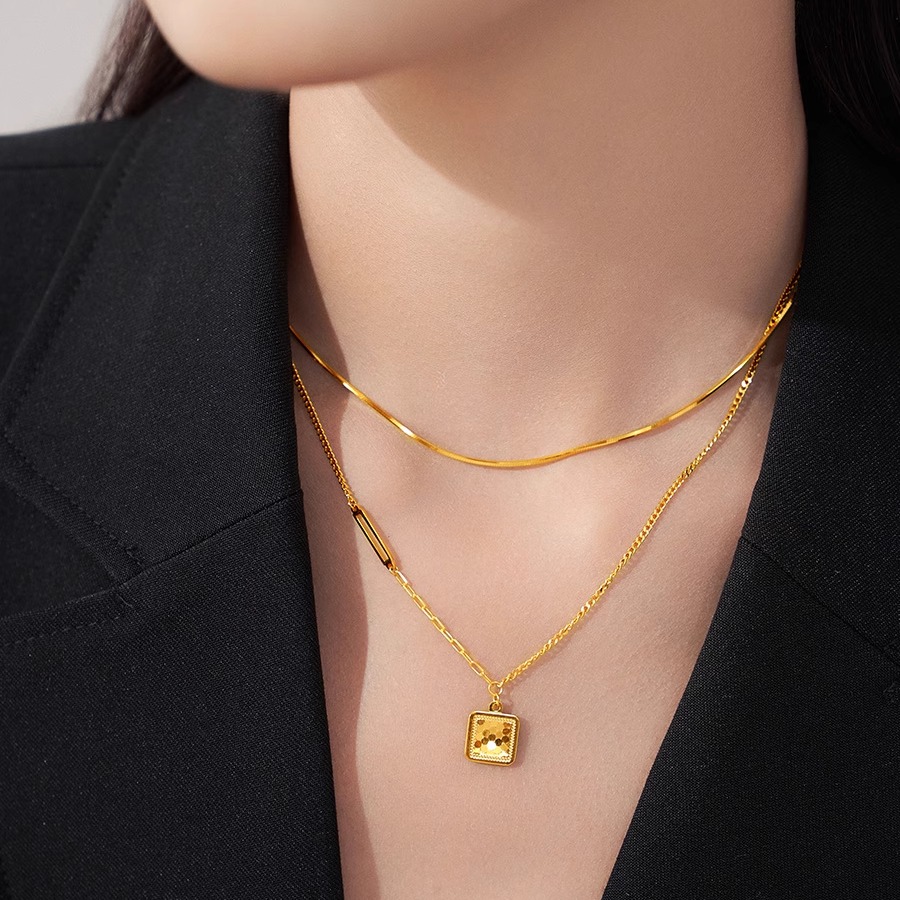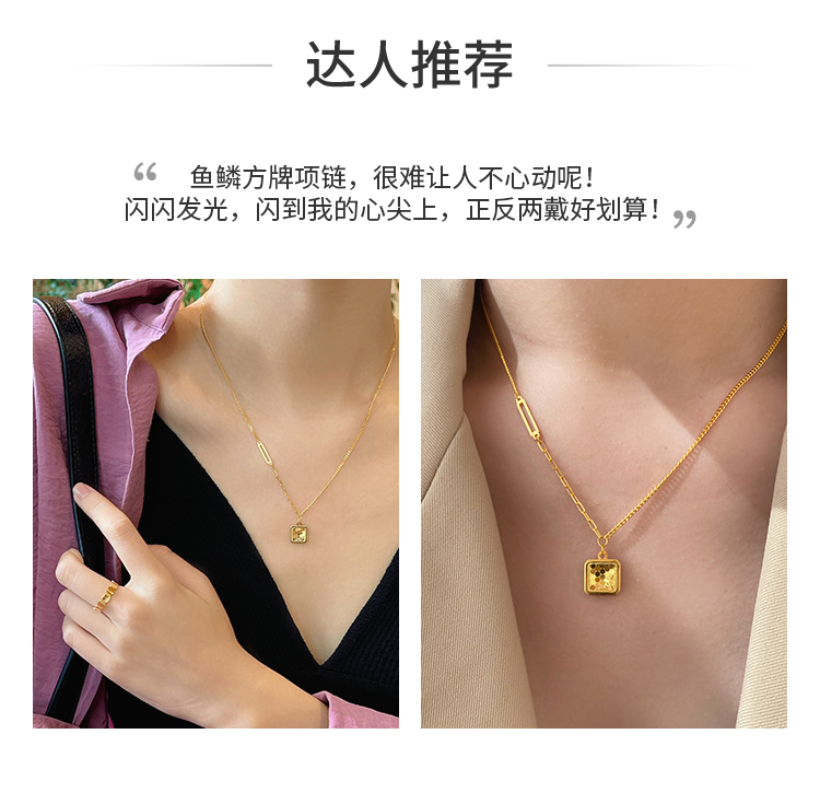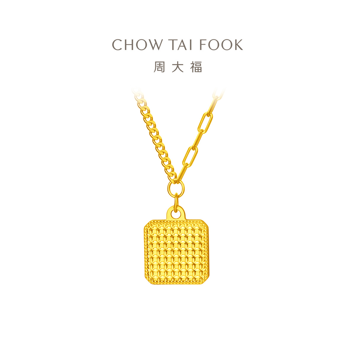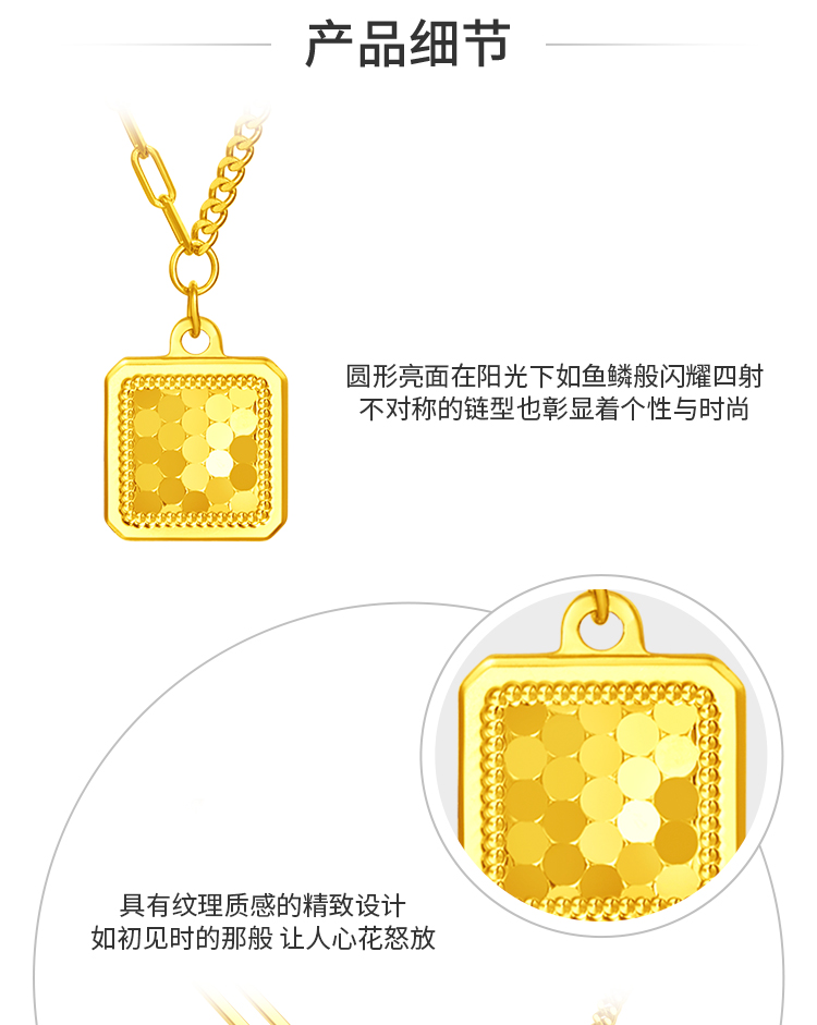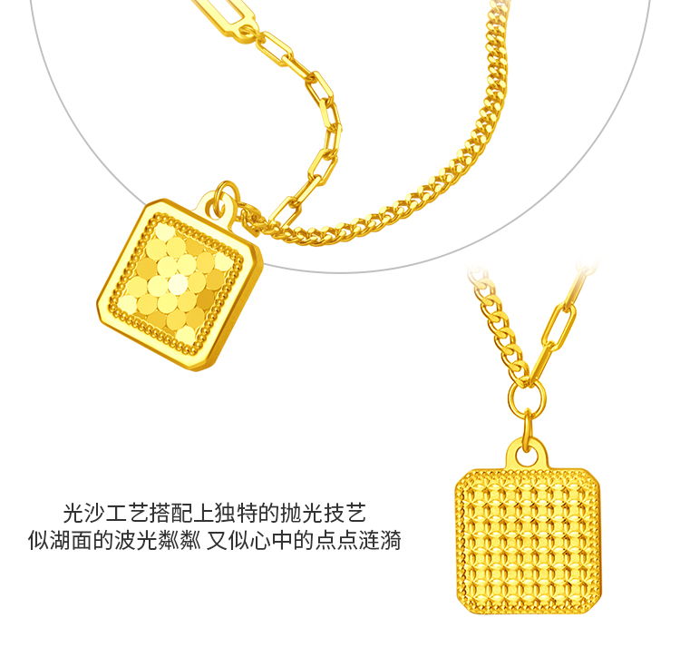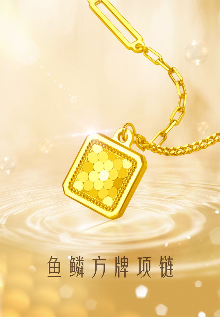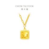 周大福 Рыбные чешуйки сияют, золото с квадратной площадкой, золотое ожерелье EOF986