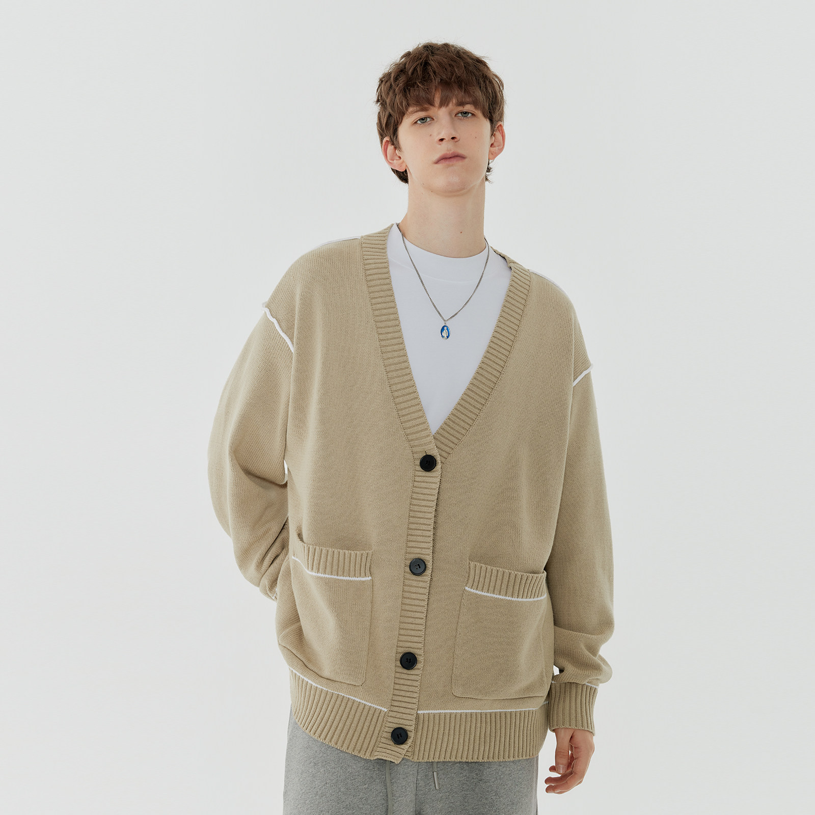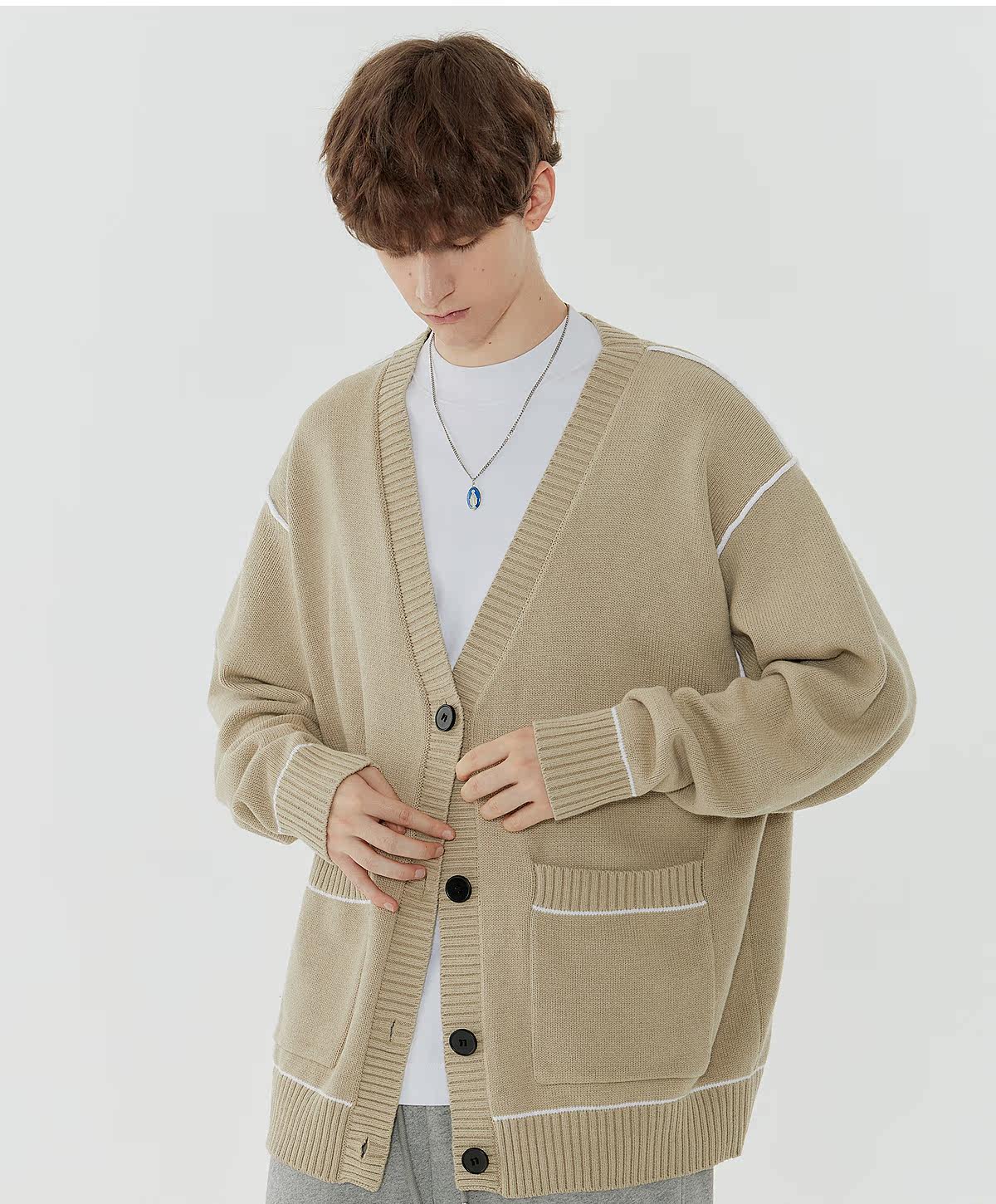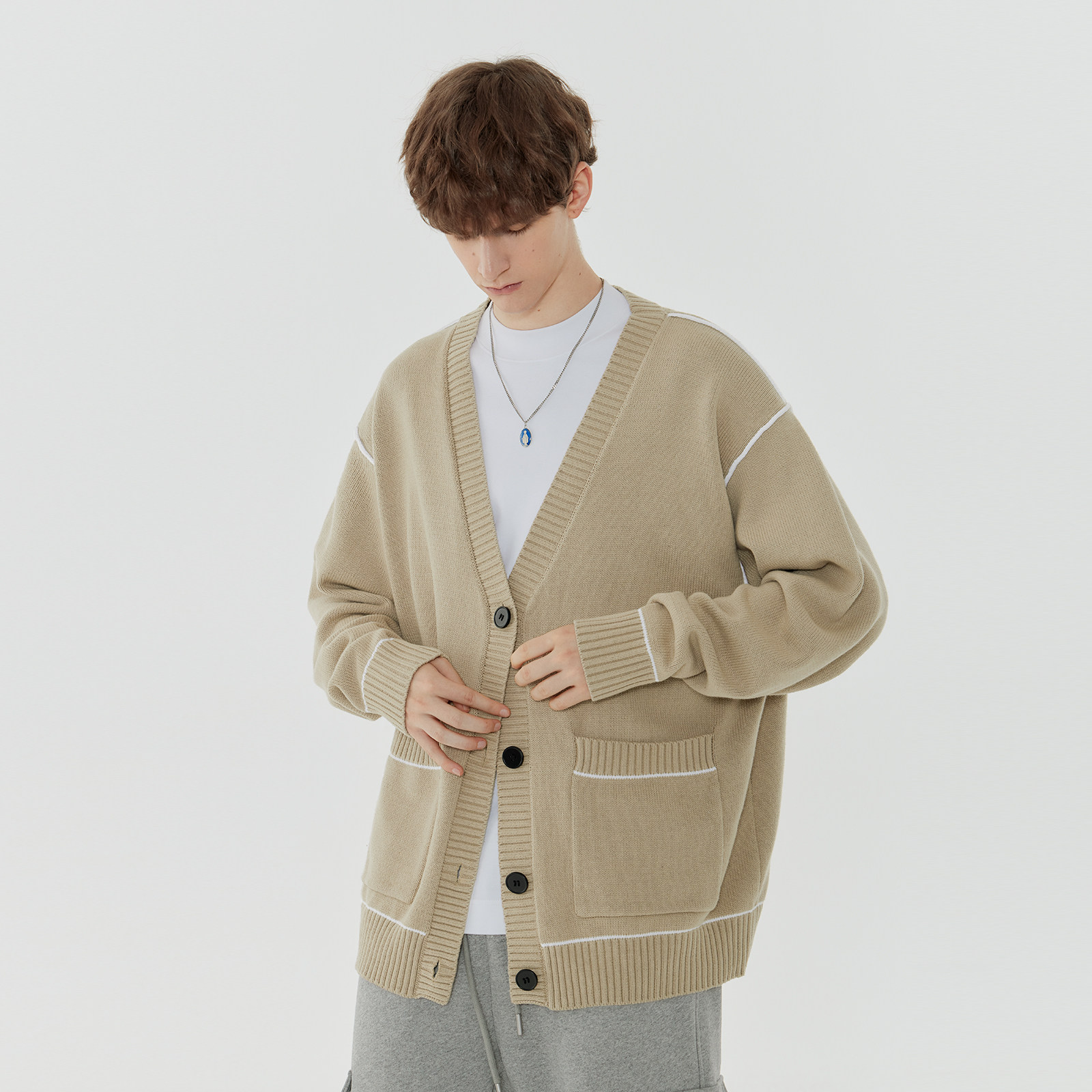 Демисезонный свитер, трендовая трикотажная рубашка, мужской кардиган для отдыха