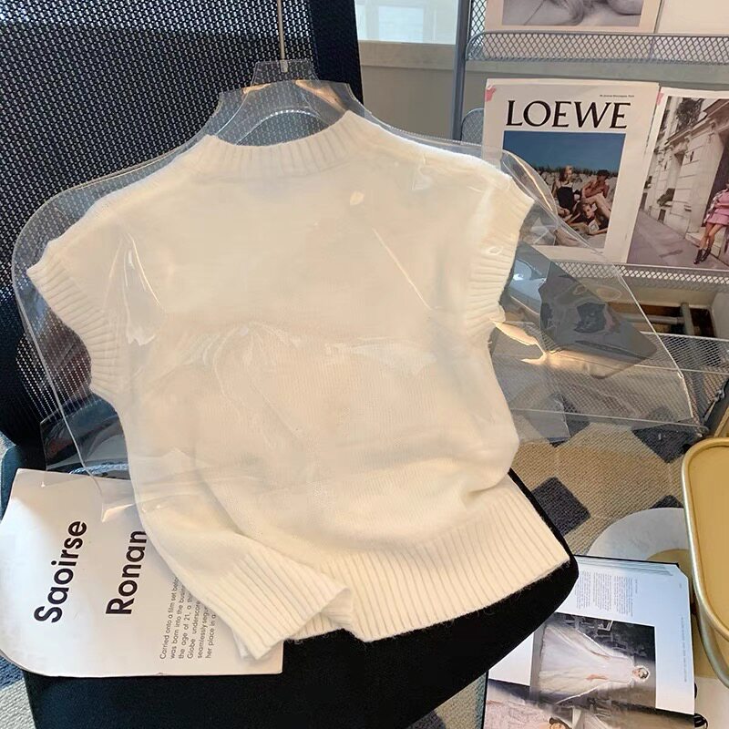 Брендовый ретро трикотажный жилет без рукавов, майка топ, французский ретро стиль