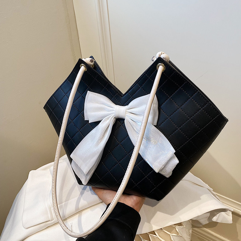 Модная вместительная и большая сумка через плечо, сумка на одно плечо с ромбовидным узором с бантиком, коллекция 2022