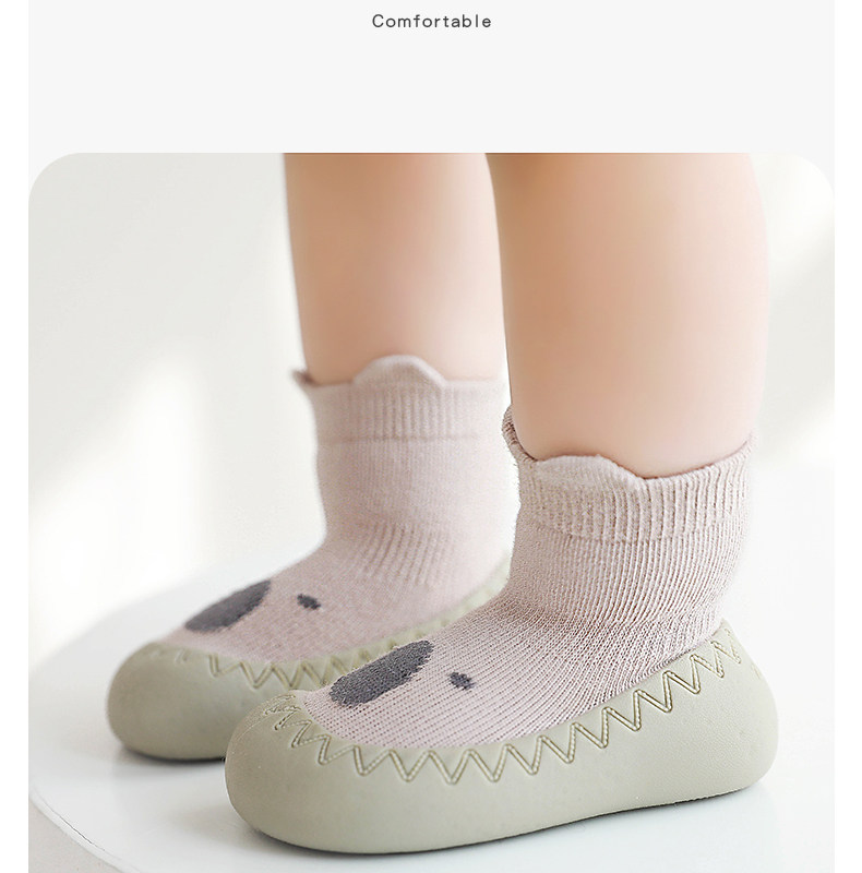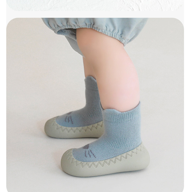 Детская обувь для малышей, весенняя, осенняя и зимняя обувь на мягкой подошве для мужчин и женщин, нескользящая напольная обувь, комнатная обувь для годовалого ребенка и носки.