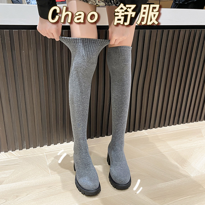 Осенние высокие сапоги, эластичные высокие демисезонные колготки, популярно в интернете