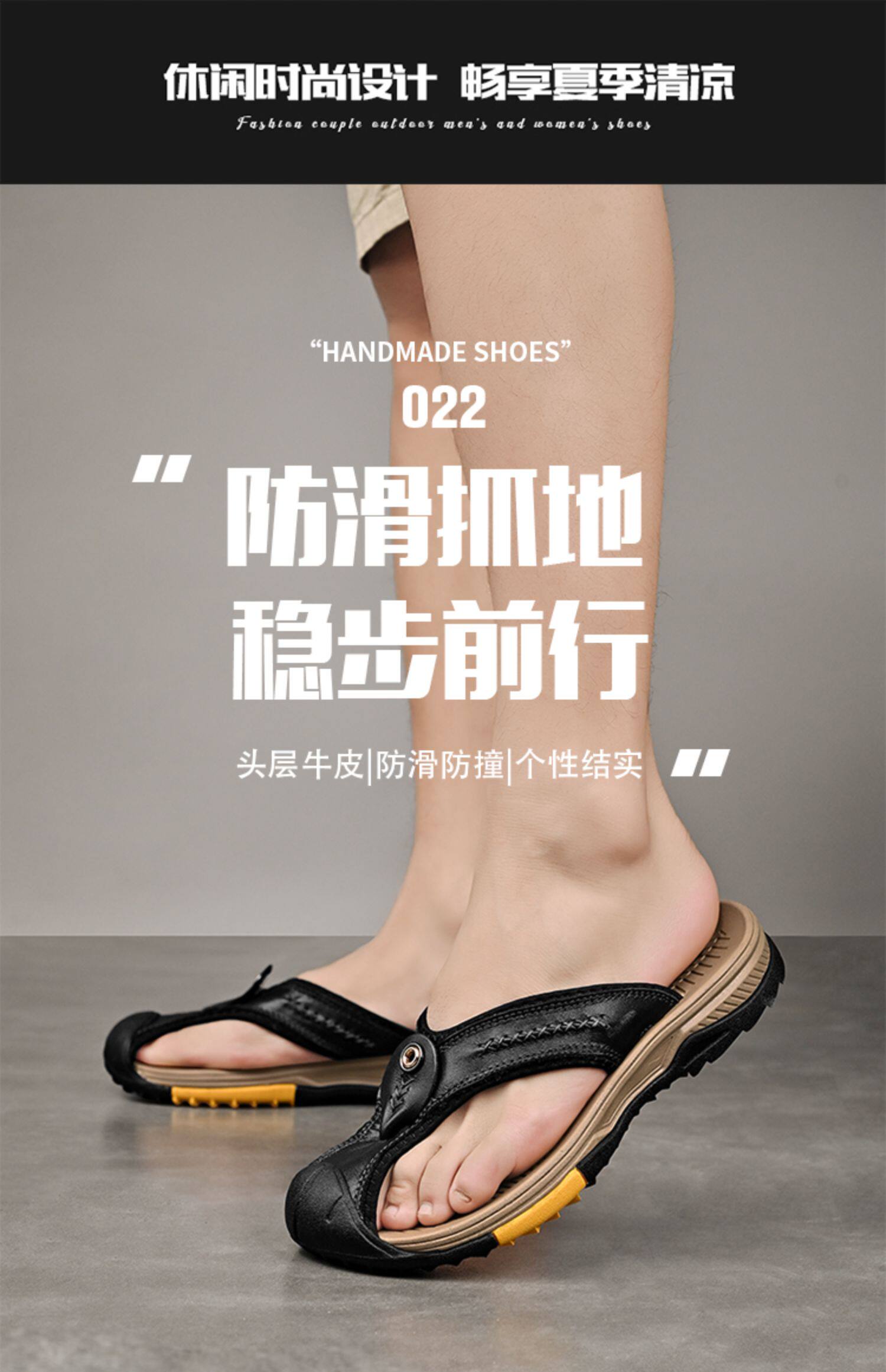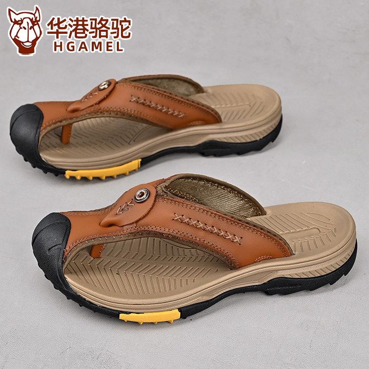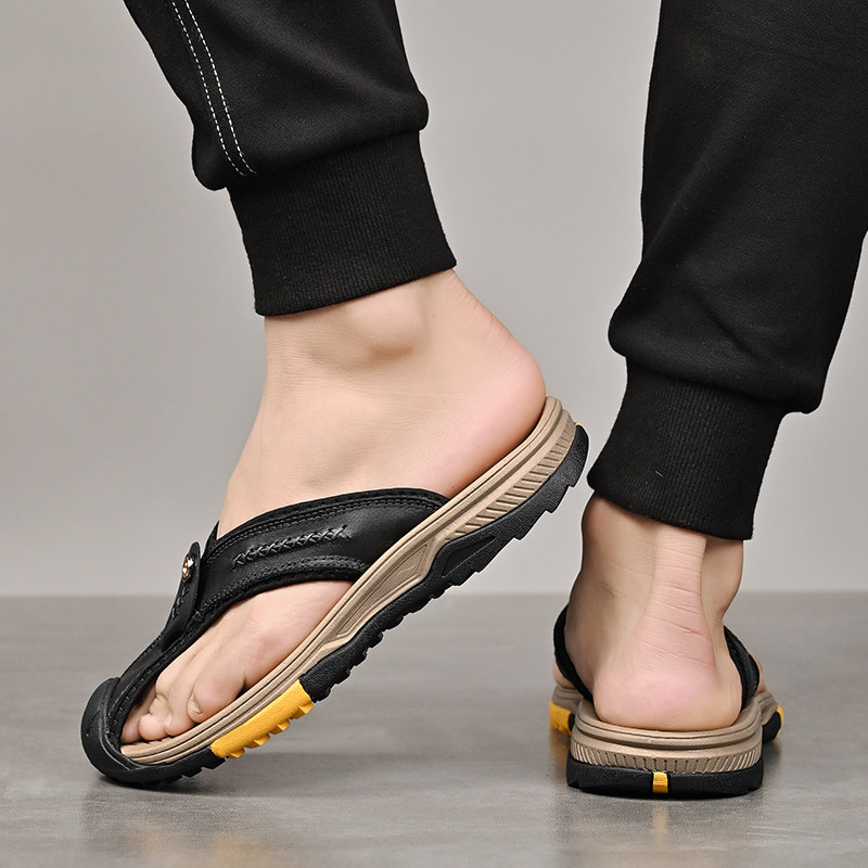 Летние кожаные сланцы, нескользящие тапочки, из натуральной кожи, воловья кожа, мягкая подошва