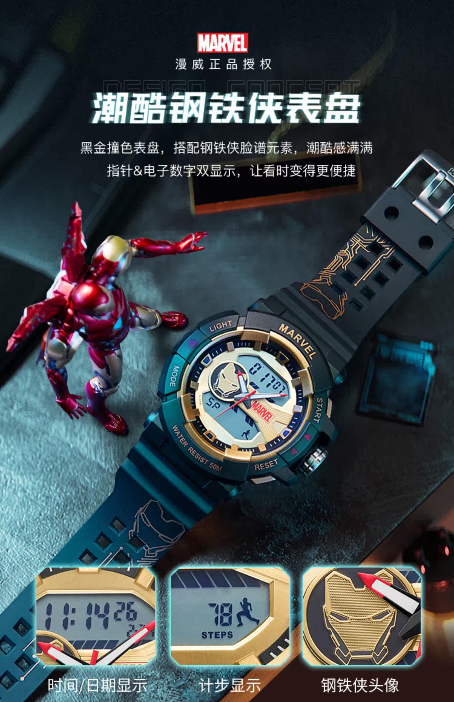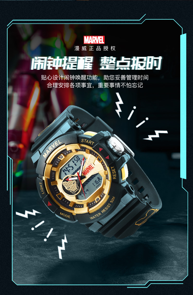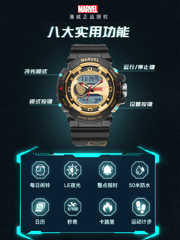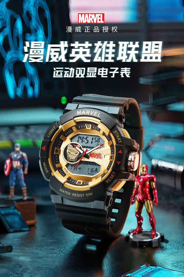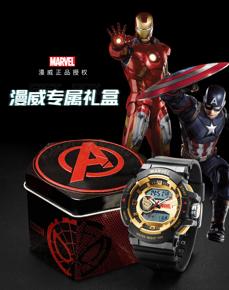 [Marvel, окружающая] Iron Man Coint -Name Electronic Watch Mald Student Trend ограниченное количество спортивных водонепроницаемых учеников средней школы