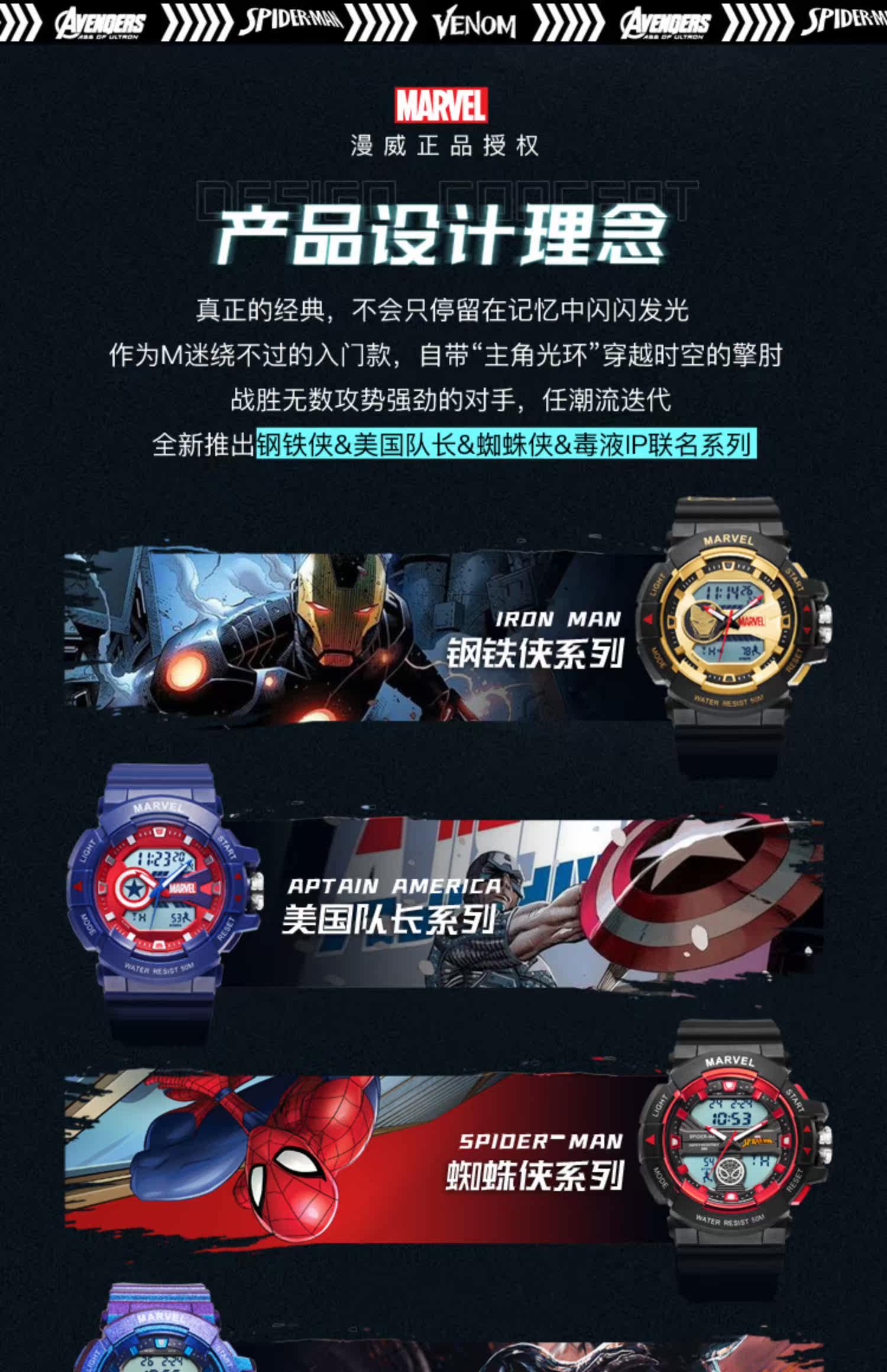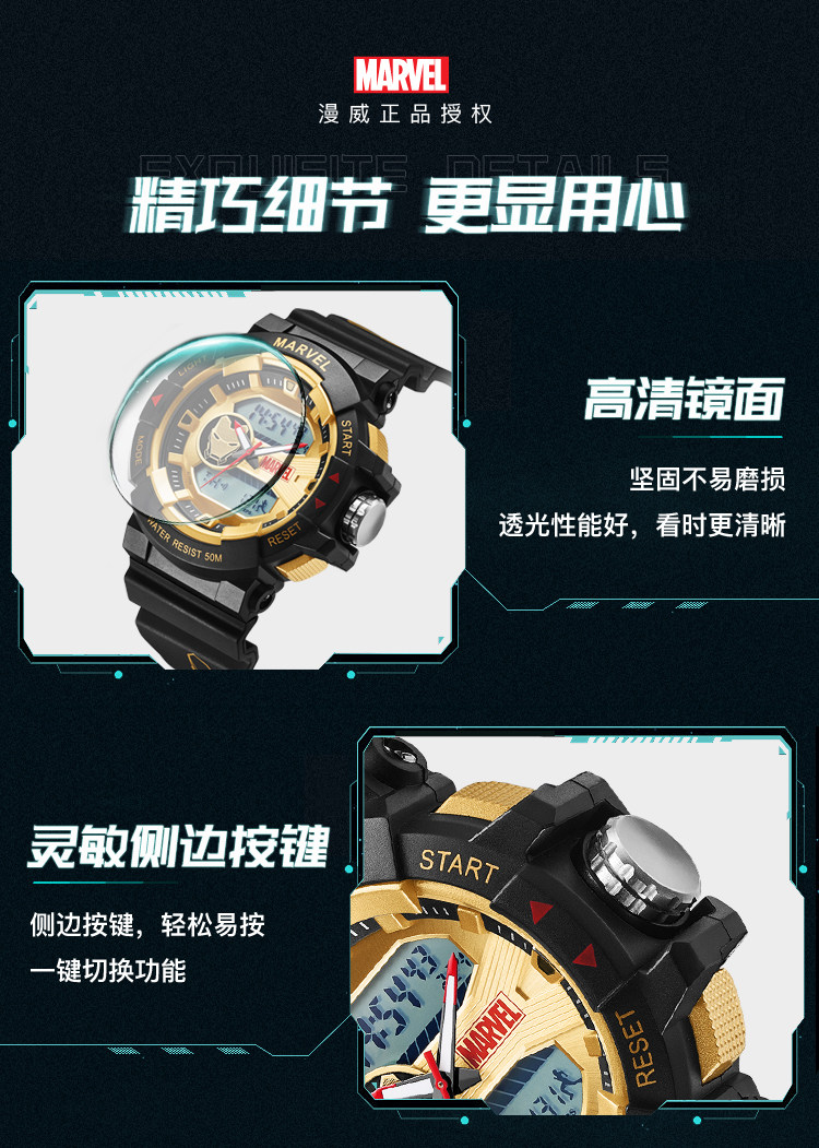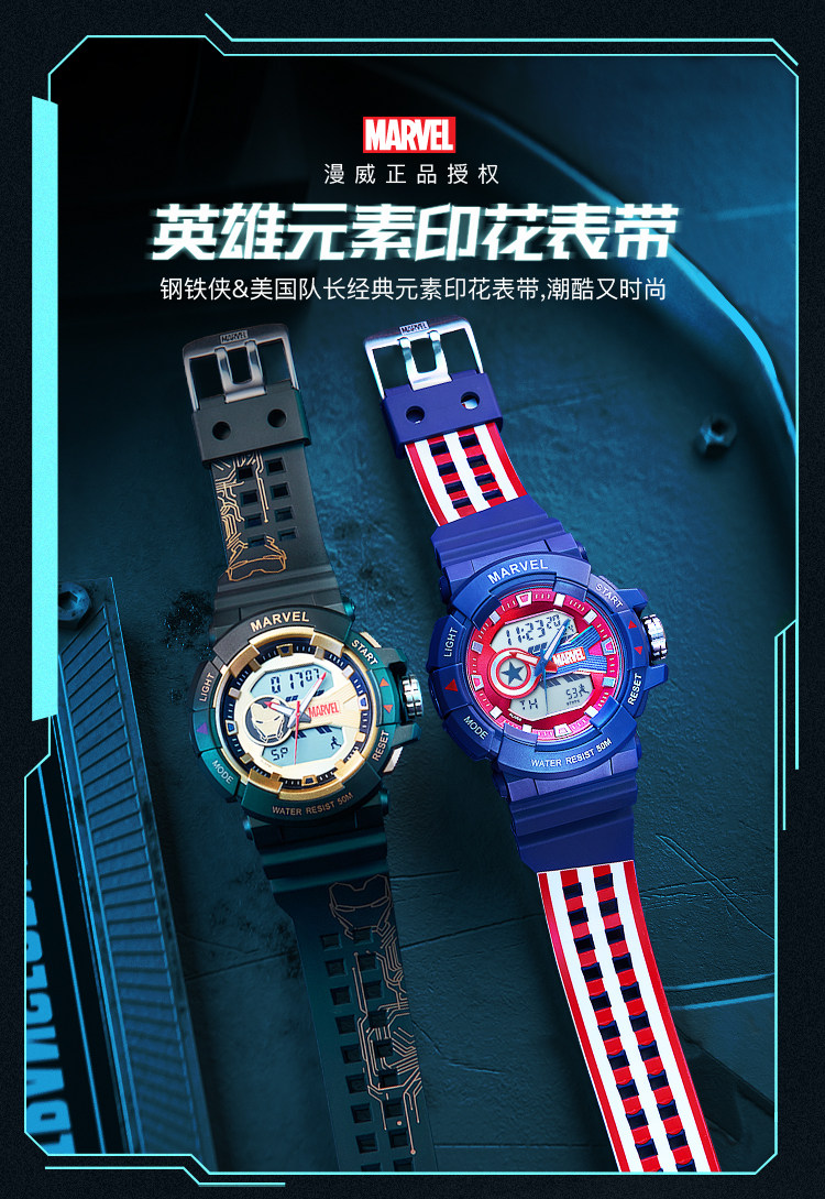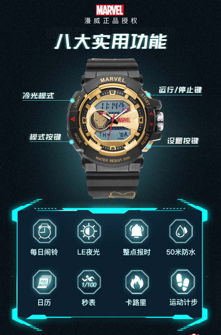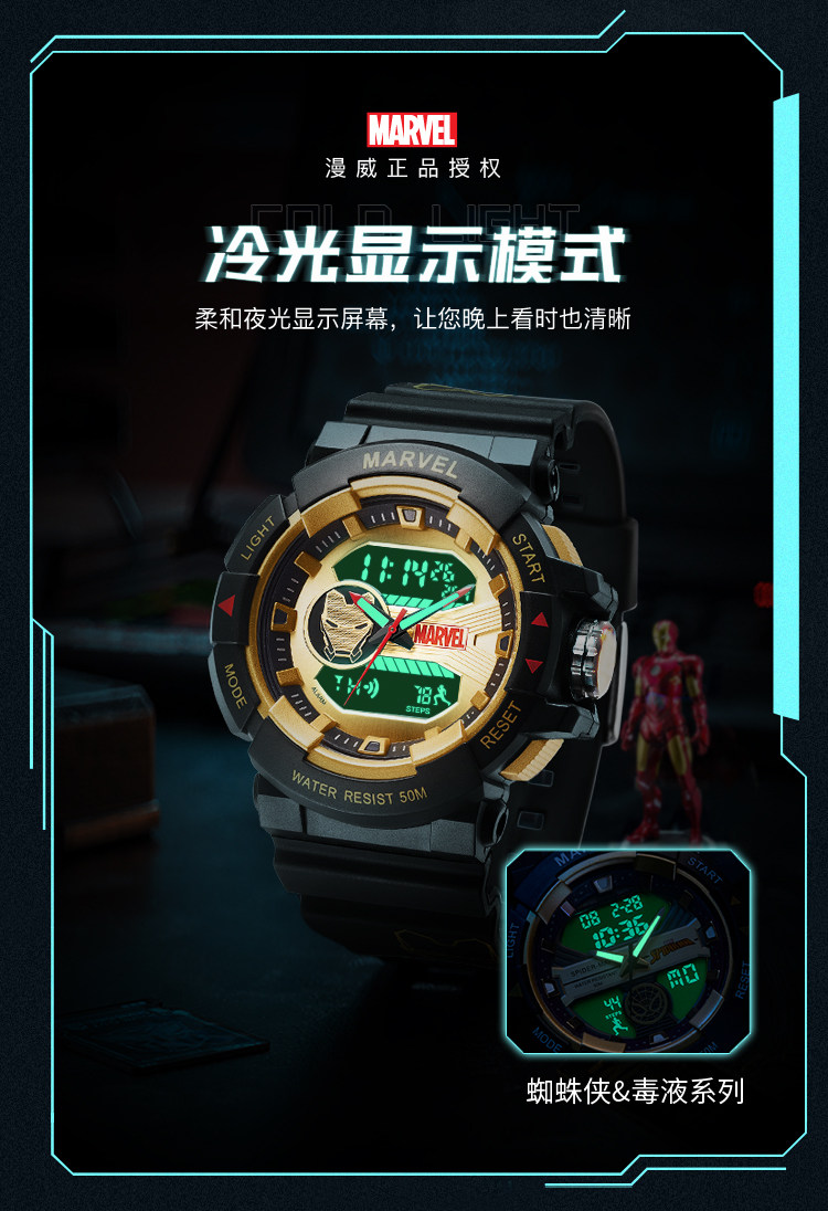 [Marvel, окружающая] Iron Man Coint -Name Electronic Watch Mald Student Trend ограниченное количество спортивных водонепроницаемых учеников средней школы