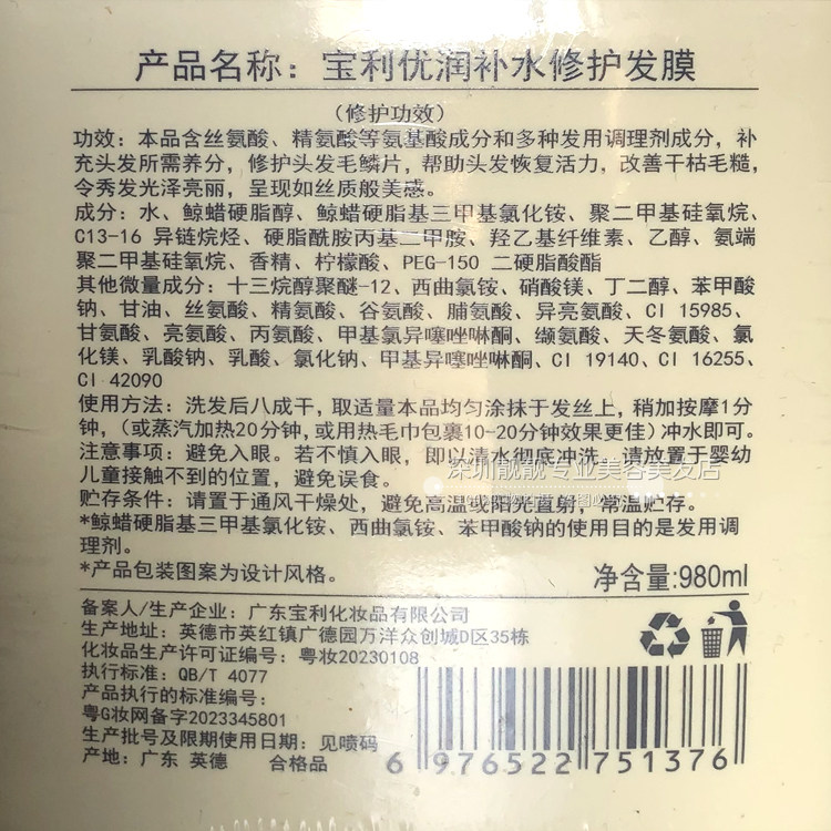 Baoli Yourun Увлажняющая восстанавливающая маска для волос 980мл