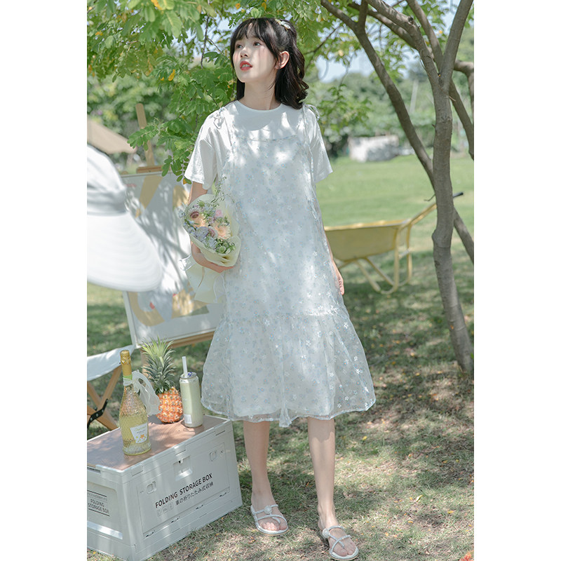 Трехмерный кружевной фонарь с бантиком, летнее платье, легкая и тонкая длинная юбка, комплект, цветочный принт