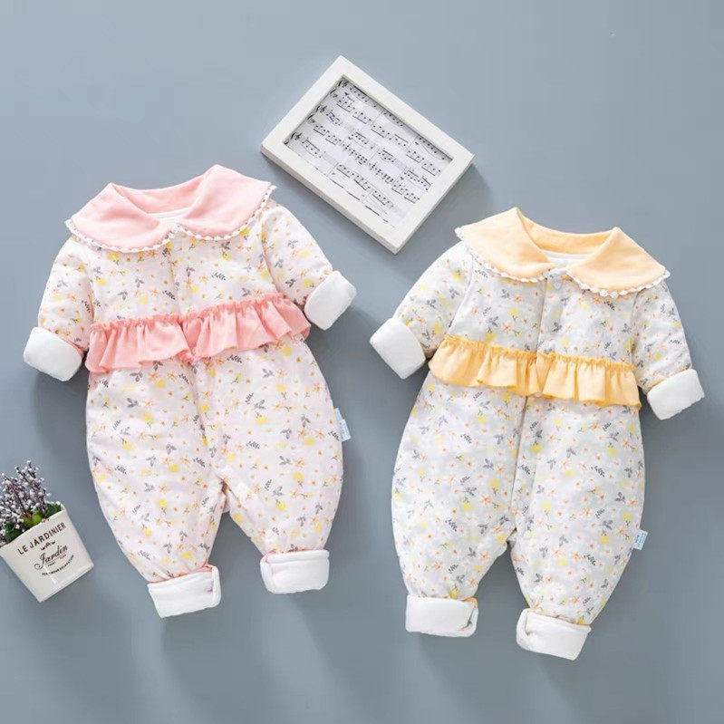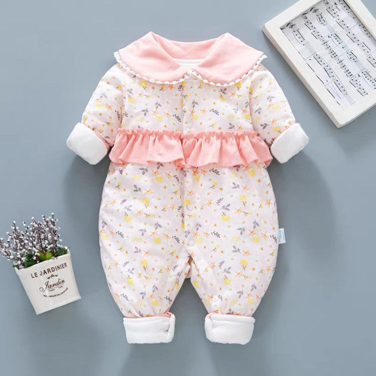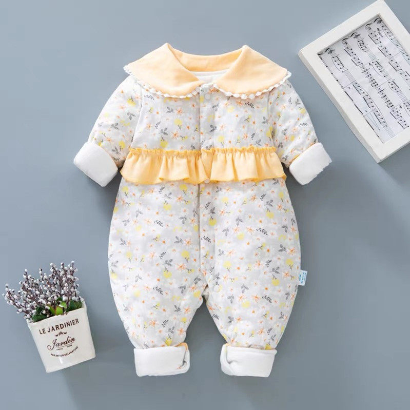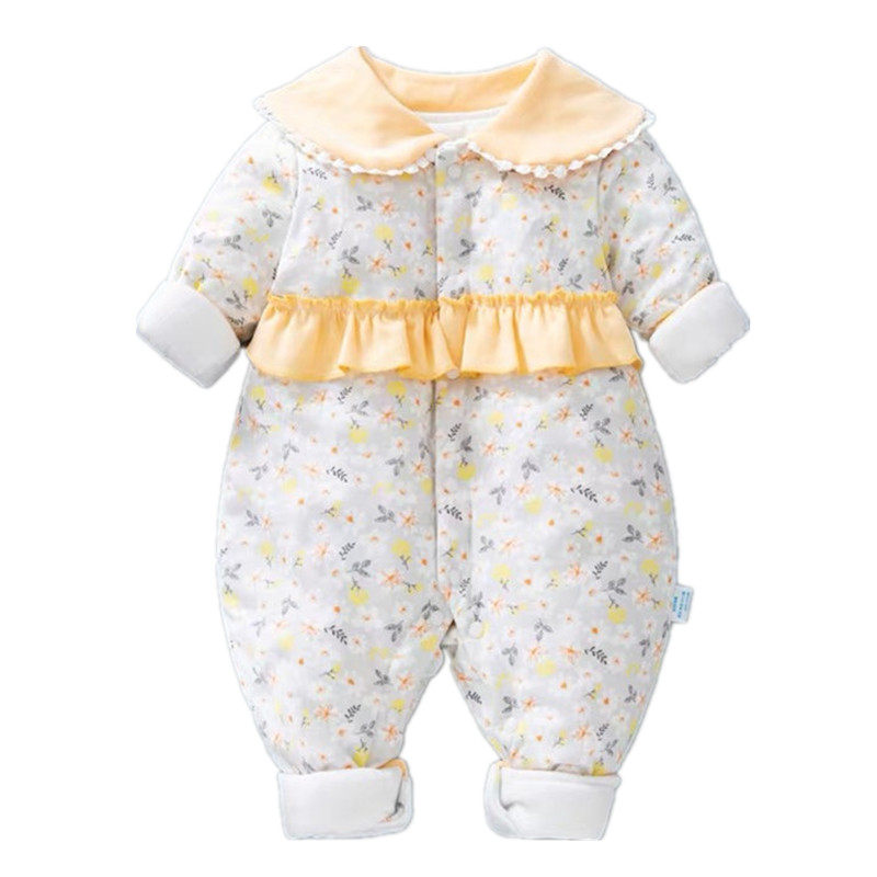 Комбинезон для новорожденных для младенца, демисезонное милое термобелье для девочек, стеганое осеннее боди, в западном стиле