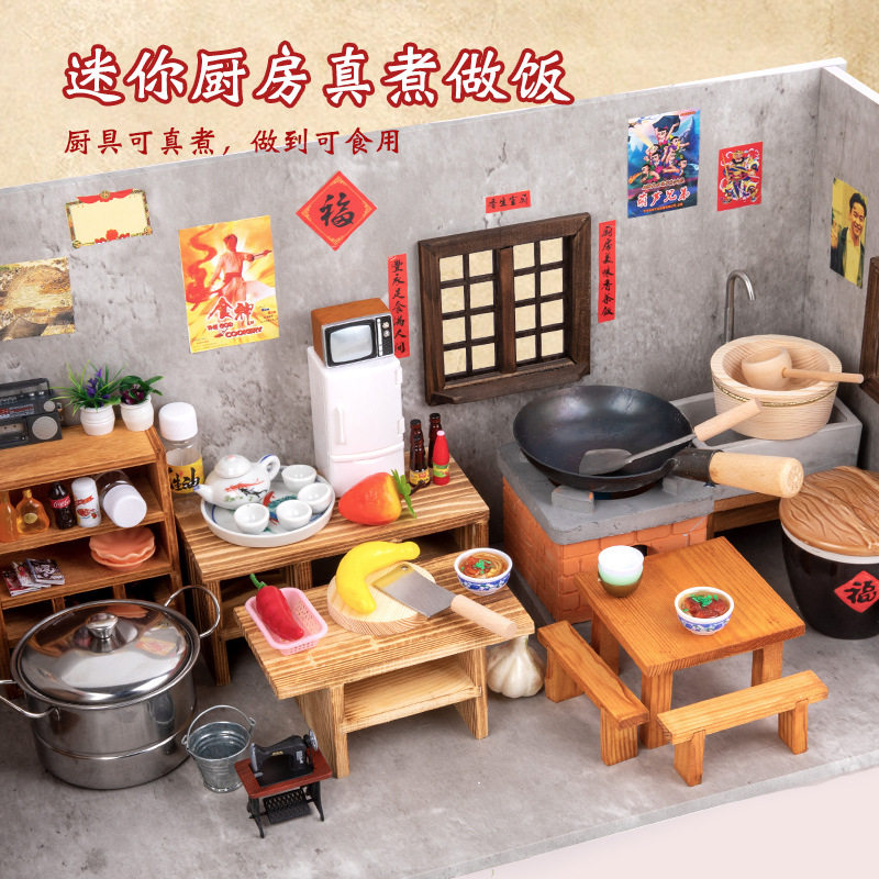 Маленький комплект, кухня, кухонная утварь, семейная игра с едой, деревянная игрушка, полный комплект