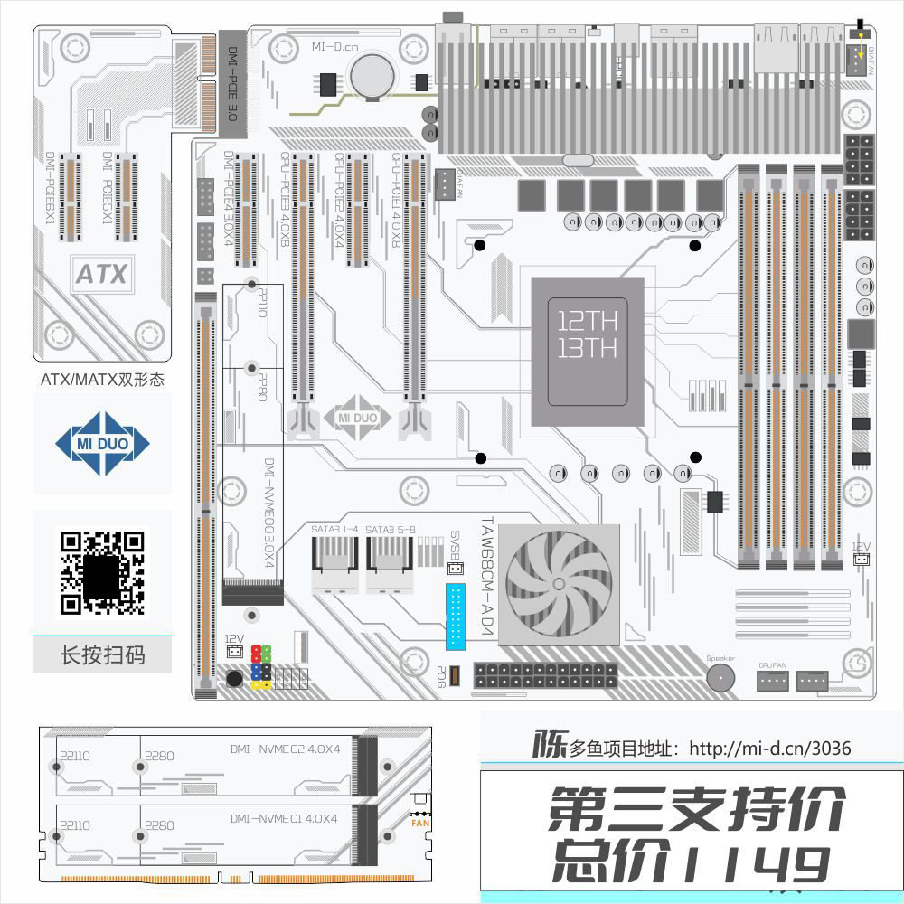 Предоплаченная специальная стрельба Midodbeck Индивидуальная W680 12/13 Generation Intel NAS/Материнская плата сервера