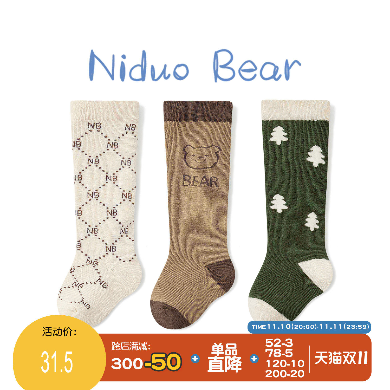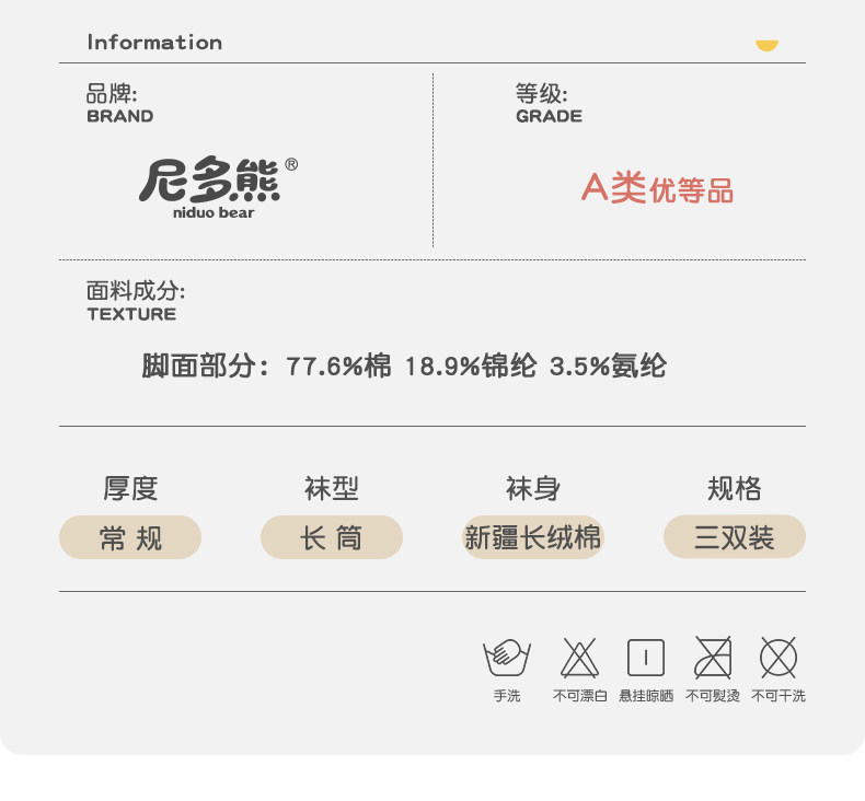 [尼多熊宝宝袜子秋冬棉袜无骨婴儿袜松口不勒儿童袜春秋长筒不过膝]