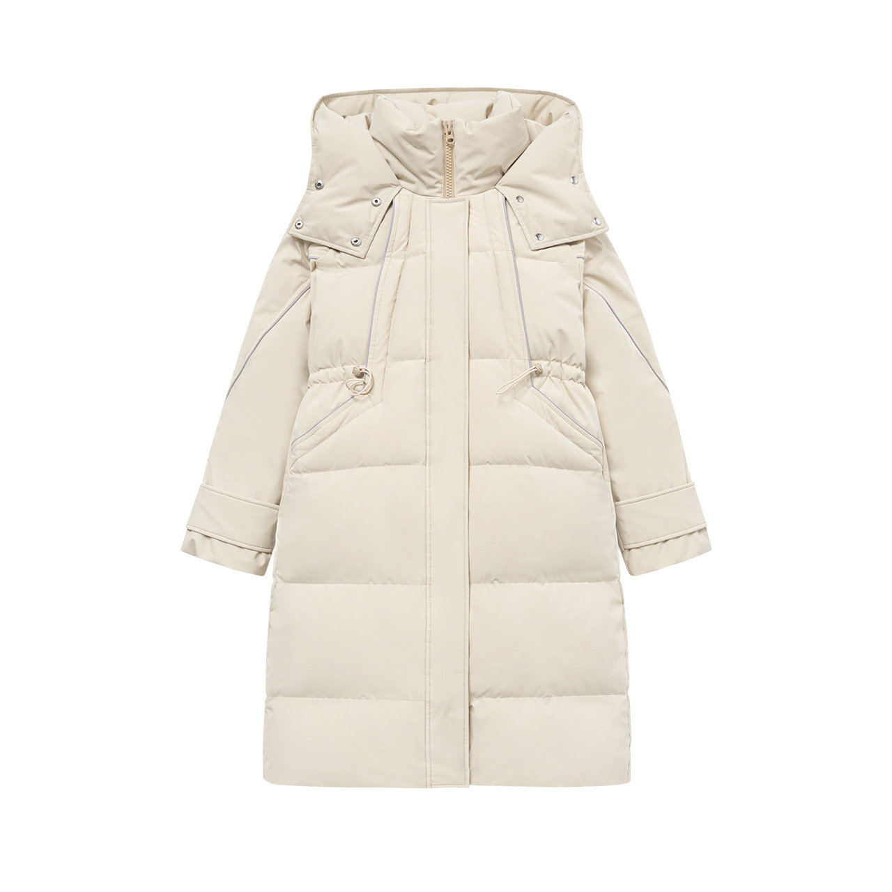 Демисезонный приталенный пуховик для отдыха с капюшоном