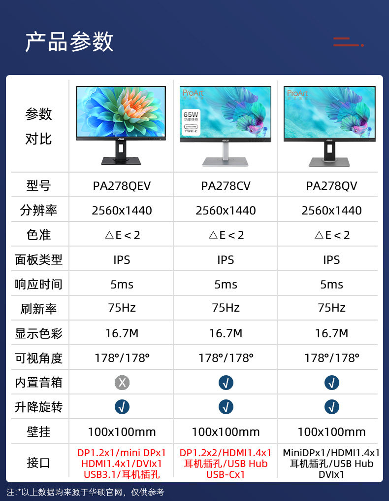 | Цвет: | ASUS ProArt PA278QEV (27 дюймов/2K/IPS/△E<2), ASUS PA278QV, ASUS PA278CV |