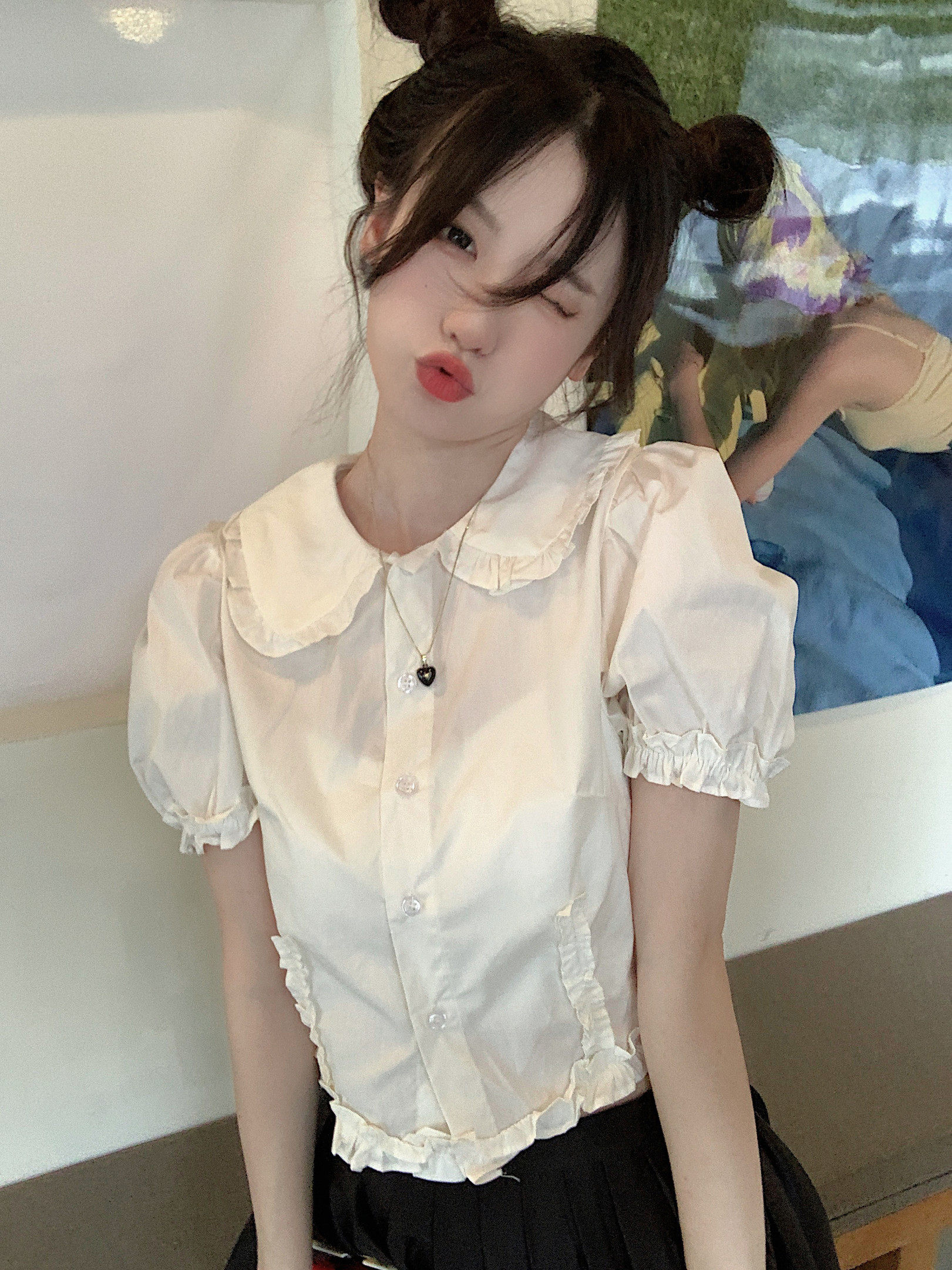 Ретро кукла, короткая белая рубашка, большой размер, рукава фонарики, новая коллекция, подходит для полных девушек, короткий рукав