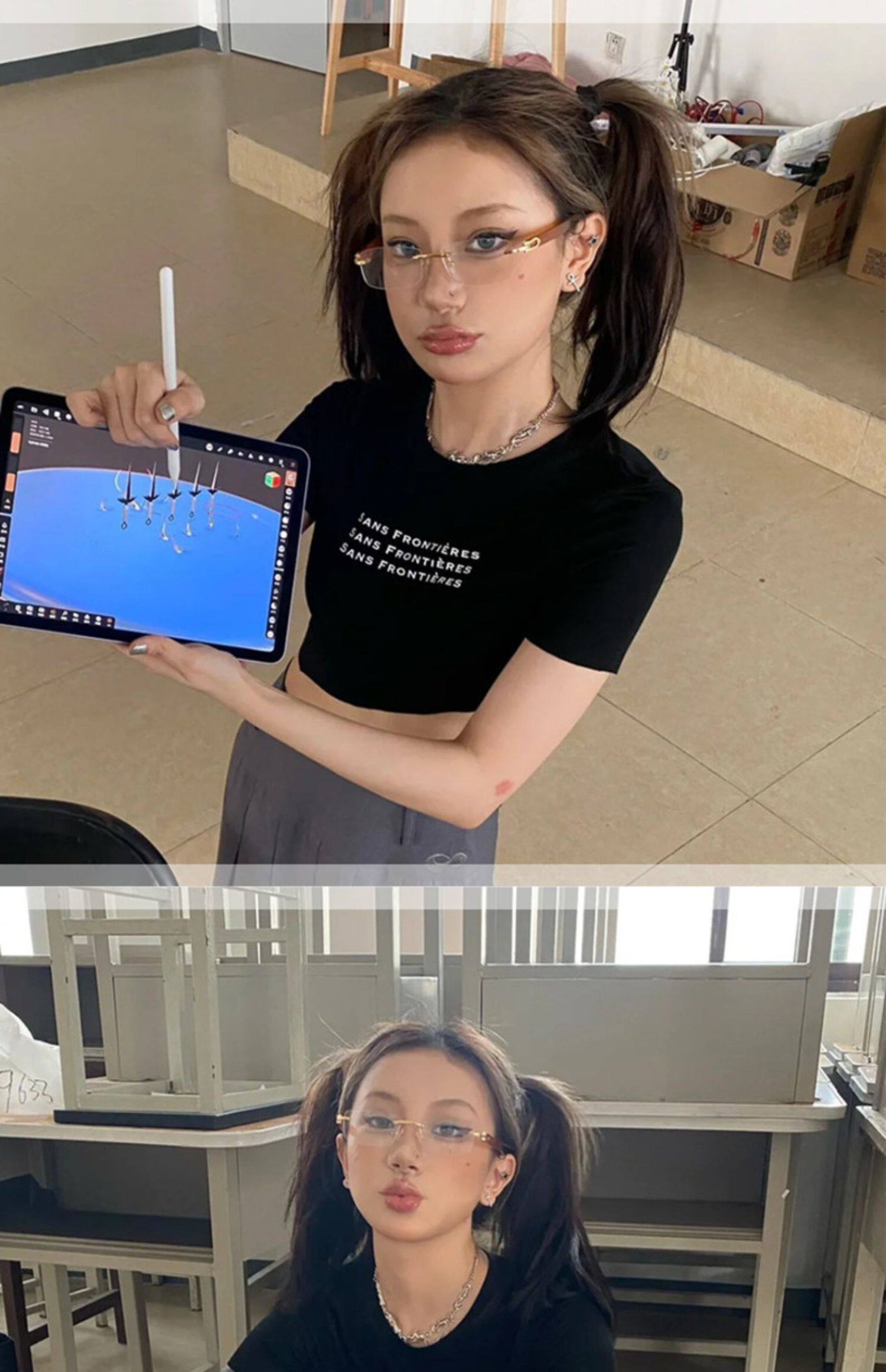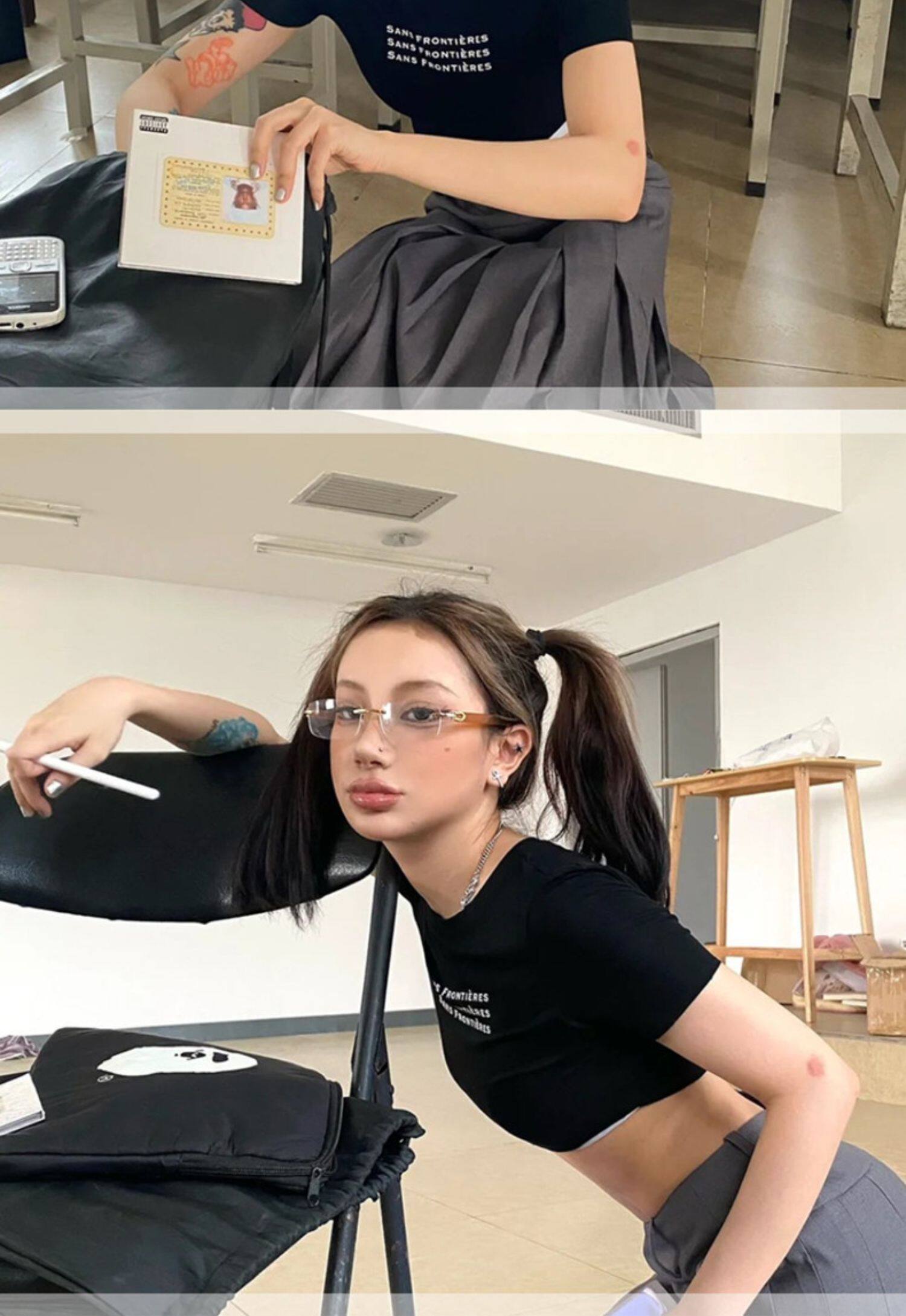 Retro American Style Y2K Millennium Hot Girl Бесплатная стаканы модные овощные борьбы Blu -Ray цифровые миопий