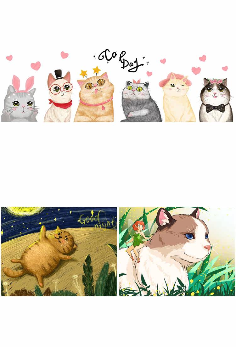 Цифровой мультяшный набор материалов, картхолдер для сна, DIY, котенок