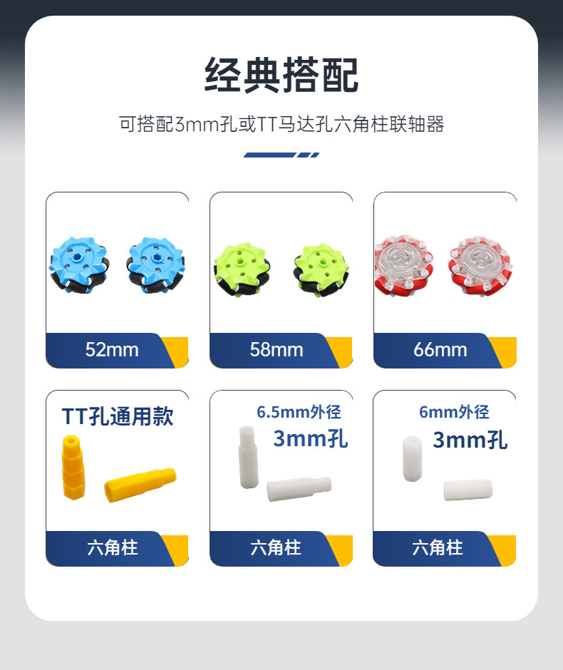 | Классификация цветов: | 52 мм пары синего колеса, 58 мм пары зеленого колеса, 66 -мм черное колесо одна пара, 52 -мм синее колесо одна пара+шестиугольная ось отверстия TT, Зеленое колесо 58 мм одна пара+шестиугольная ось отверстия ТТ, 66 -мм черное колесо одна пара+шестиугольная ось отверстия ТТ, Шестиугольный, 52mm, 3mm, Шестиугольный, 58mm, 3mm, Шестиугольный, 66mm, 3mm, 10 ТТ отверстия шестиугольные суставы 10, 3 мм отверстия Маленький шестиугольный куплет 10 колонны вала 10, 10 3 -миллиметровое отверстие большие шестиугольные колонны., 1, 1 |