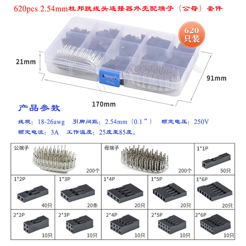 620pcs 2,54 мм разъема для головки дюпонта сингл и двойной строки -заглушка -ин -в резиновой оболочке с мужским и женским набором терминала