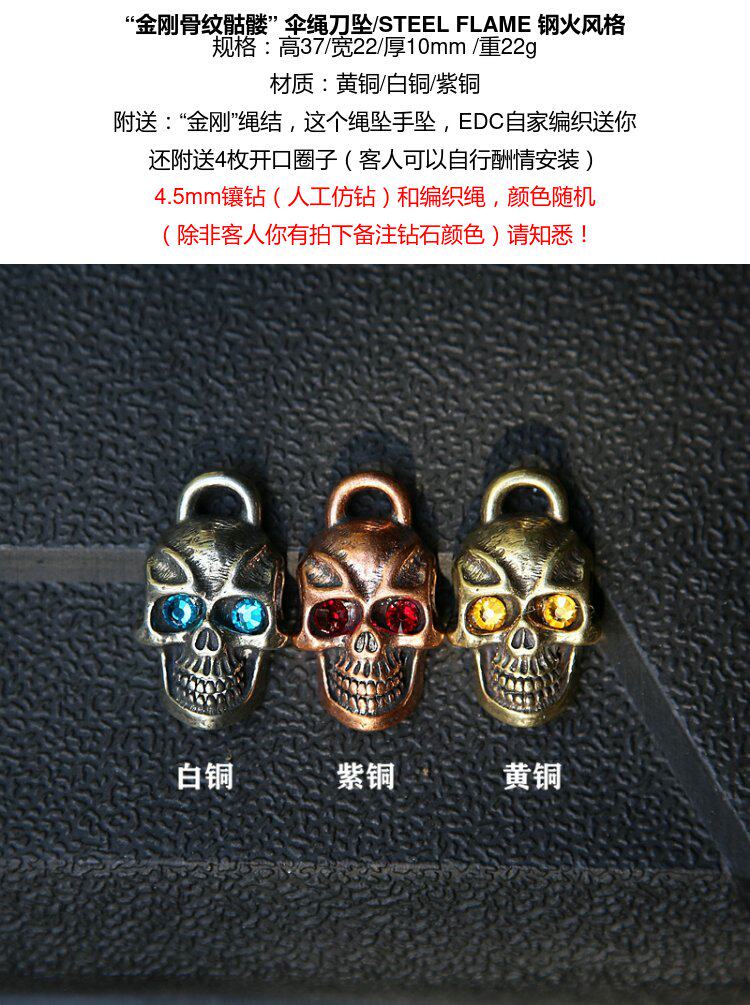 Кинг-Конг череп череп паракорд нож кулон СТАЛЬНОЕ ПЛАМЯ американская стальная огненная подвеска с бриллиантами ручной работы