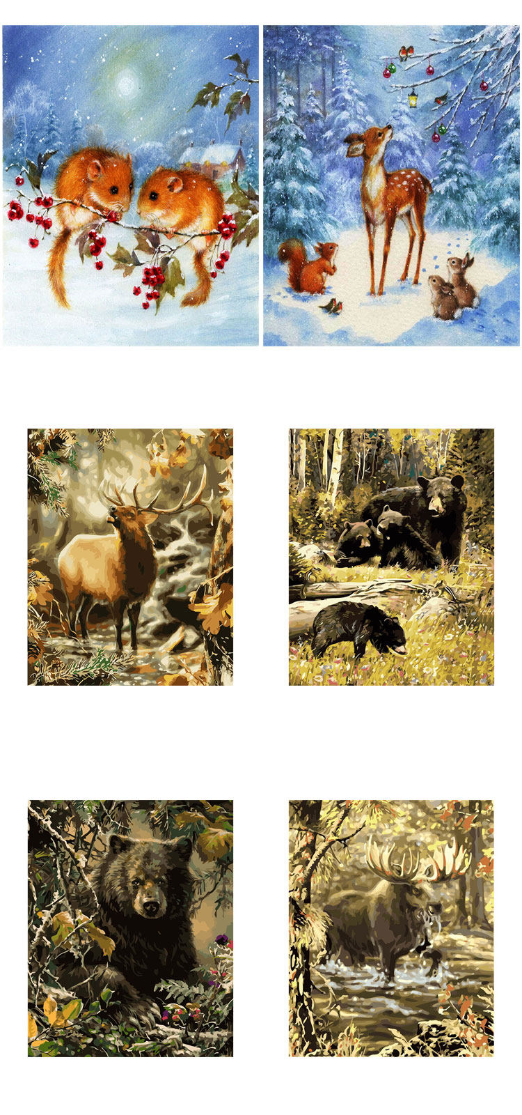 DIY цифровая картина маслом, самоокрашивающийся материал, посылка, лес, две белки, пятнистый олень, черный медведь, сова, декоративная живопись