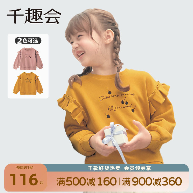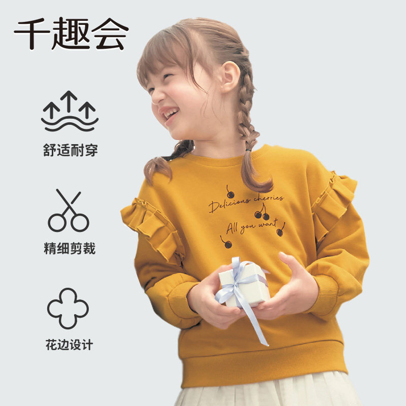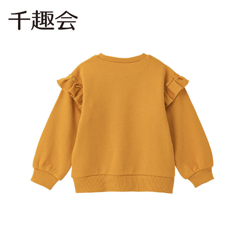Детская одежда Qianquhui, весенне-осенняя детская забавная хлопковая толстовка с декоративными рюшами, пуловер для девочек, топ