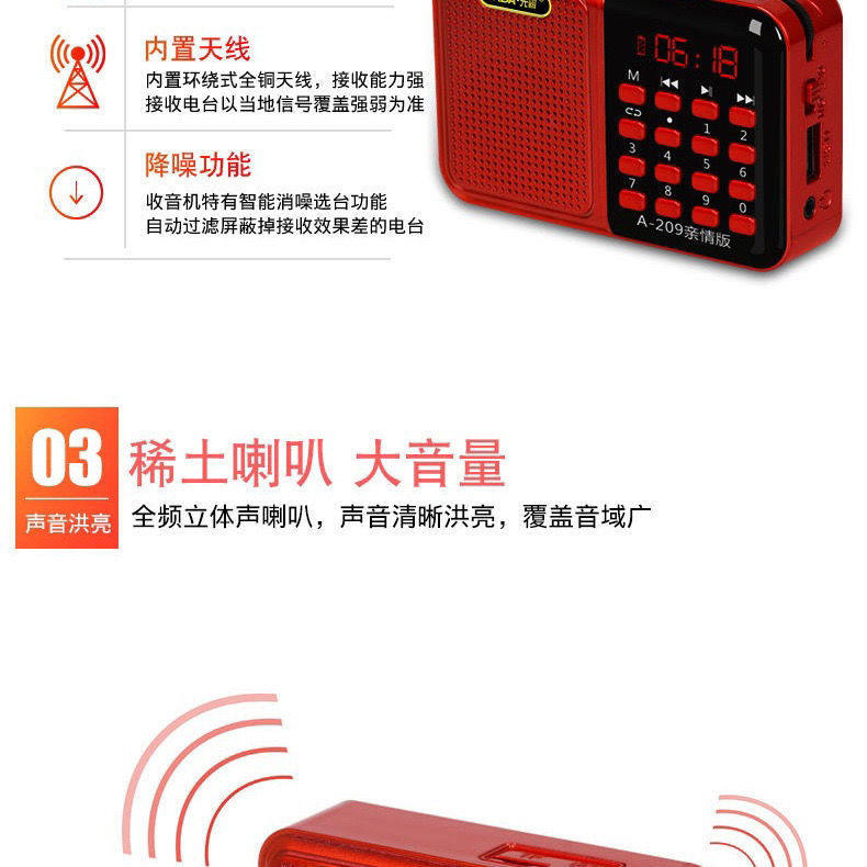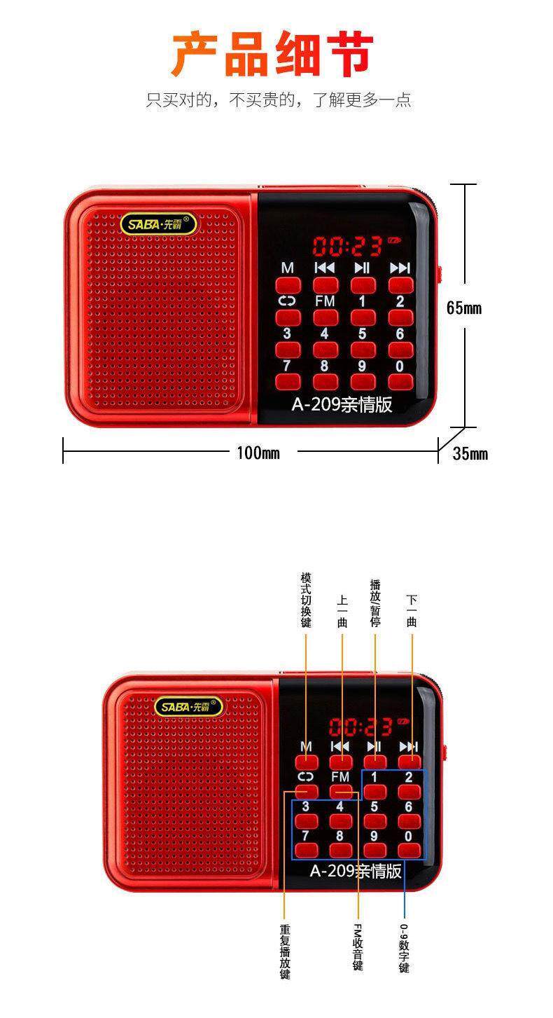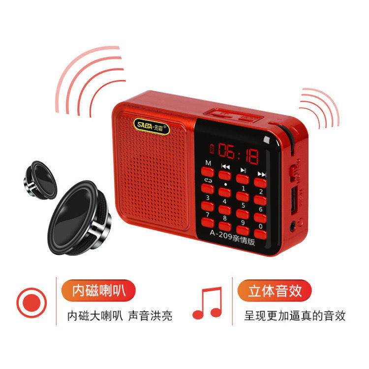 Radio Radio Radio Disker Card A209, пожилые люди вставляют карту u диск -динамик портативный фанат MP3 Music Player Fan