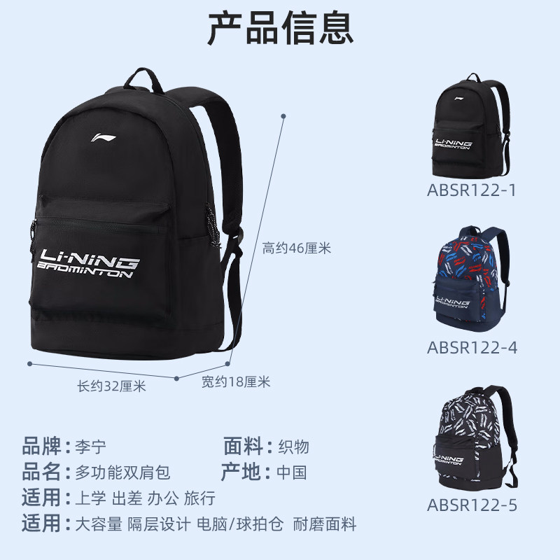 Li Ning, спортивная вместительная и большая сумка для путешествий, трендовый ноутбук, школьный рюкзак для школьников, подходит для подростков