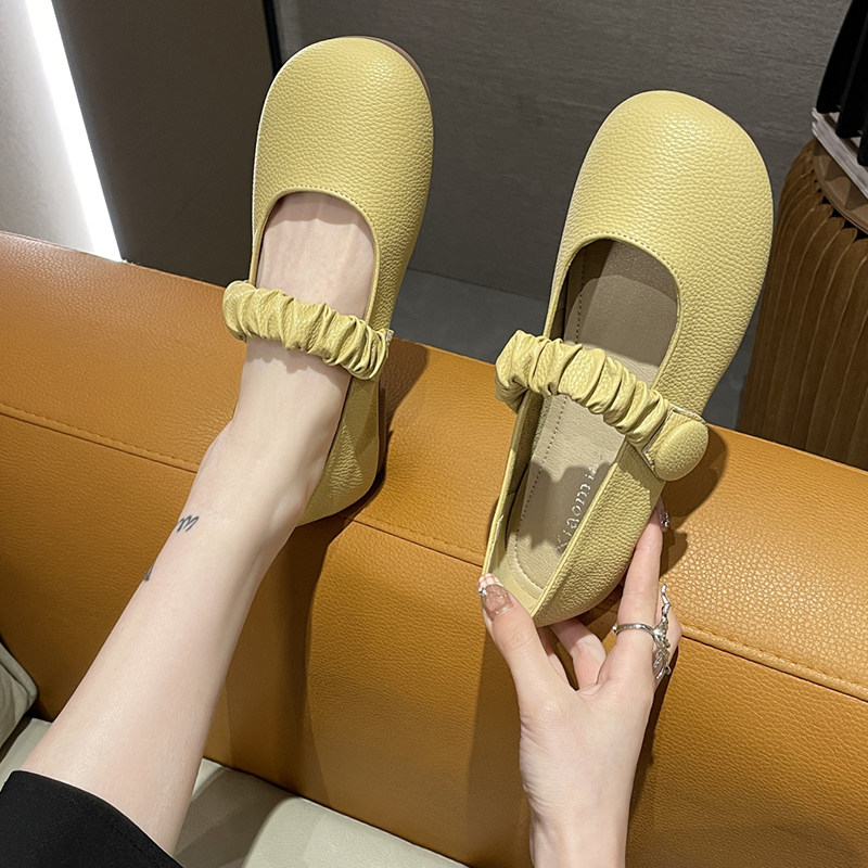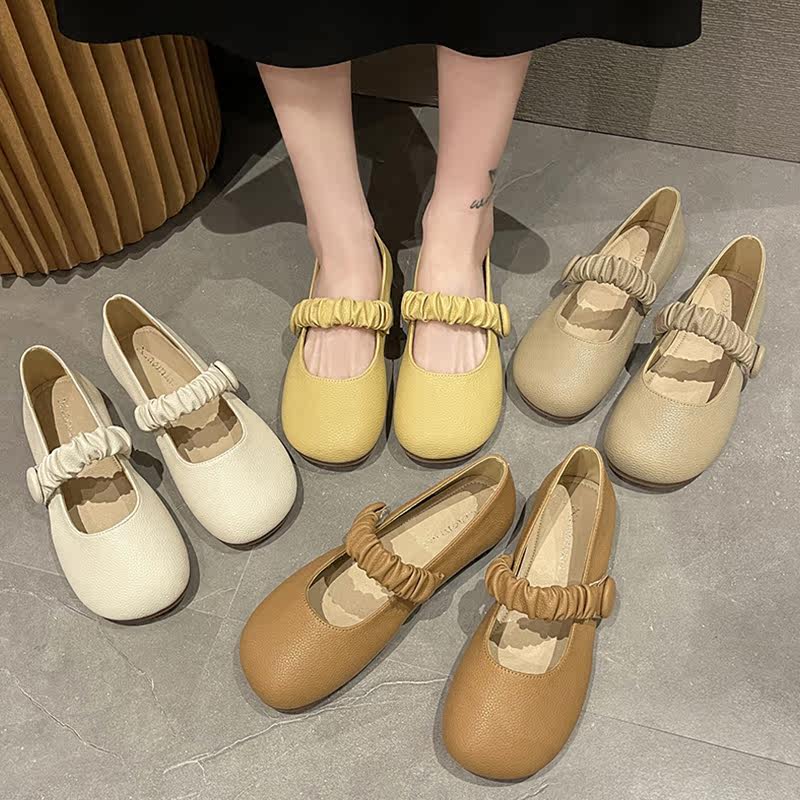 Мэри Джейн Женские туфли летняя новая смертная мягкая кожаная одиночная ботинки поздно дикая дикая дикая гибкая бедная мощность удобная бабушка обувь