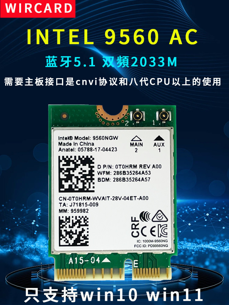 Intel AC9462NGW 9560 ASUS MSI SHENZHOU Беспроводная сетевая карта 5G Двойная частота WiFi Bluetooth 5.0