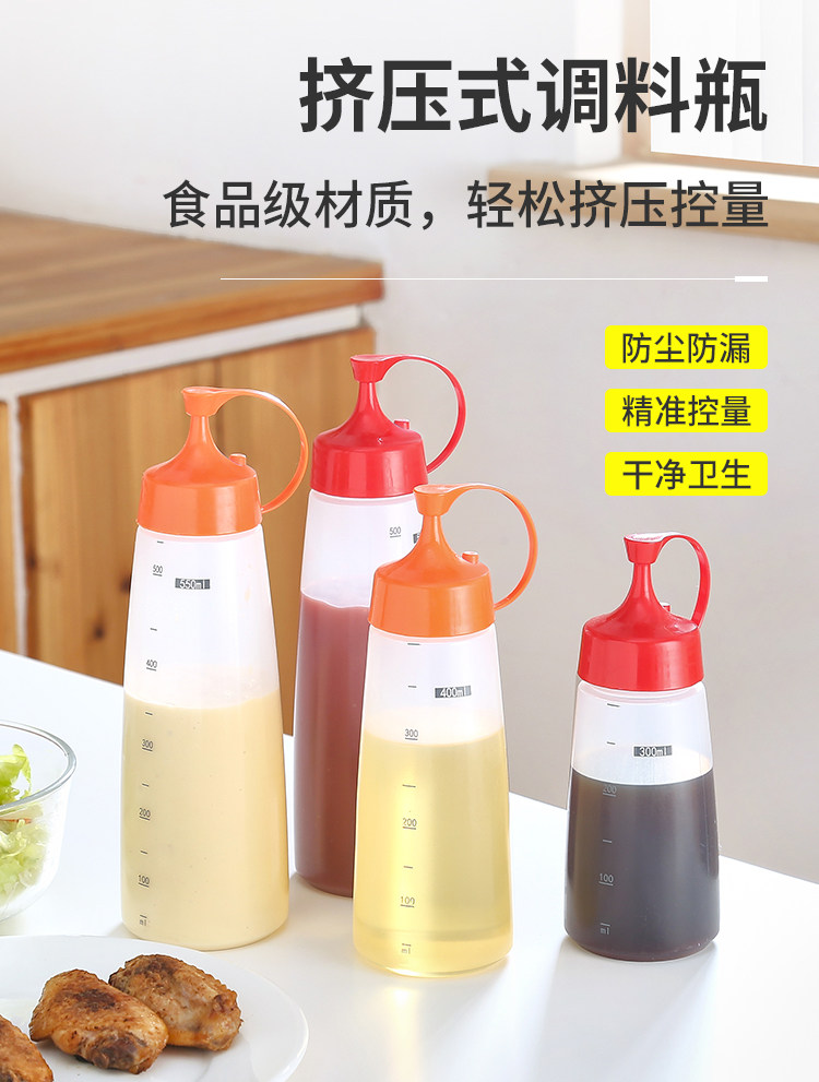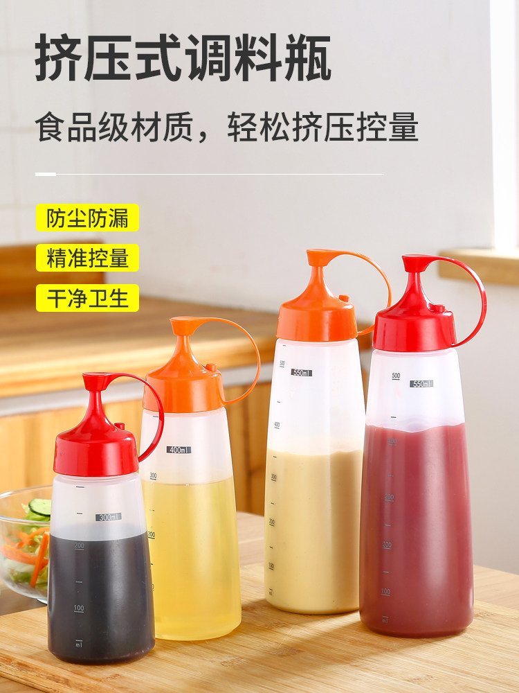 Томатный соус сжимал бутылку дома, накопление рта, сжимание соуса, бутылочная пища -обновление пластиковая бутылка для салата Коммерческая банка с соусом резервуар