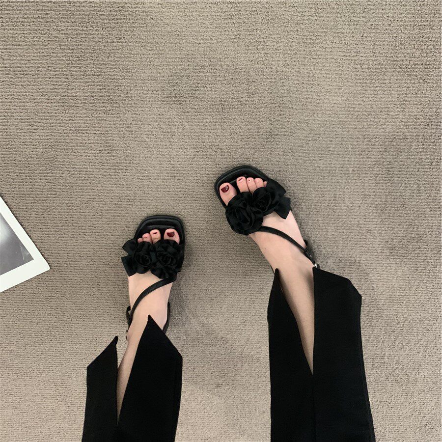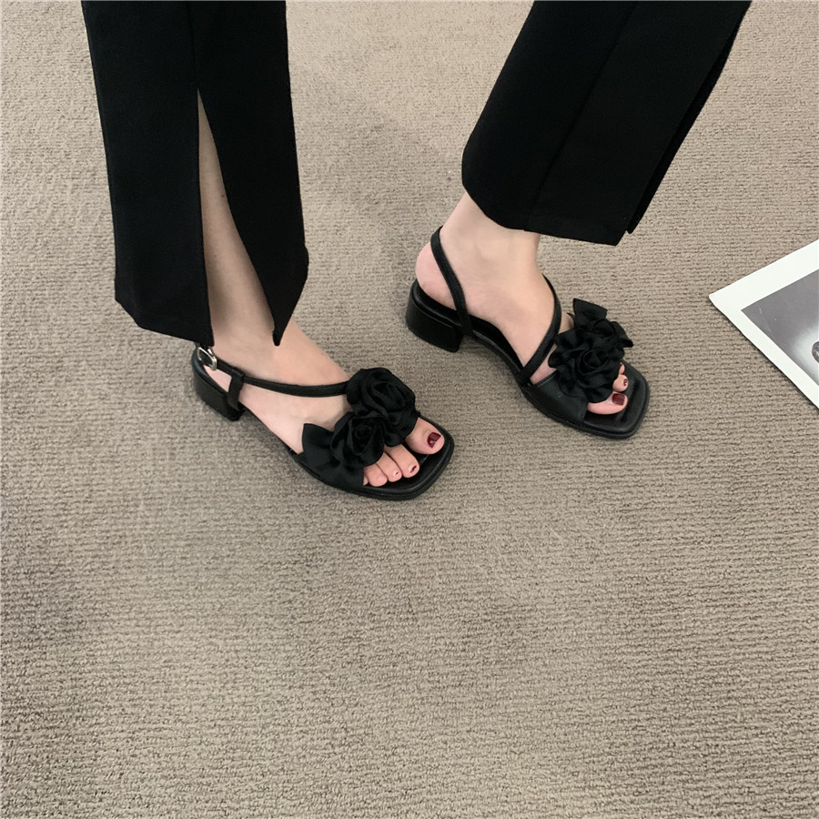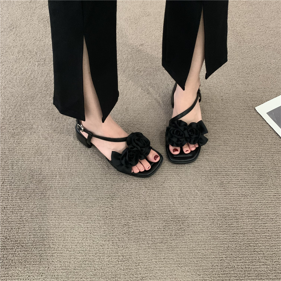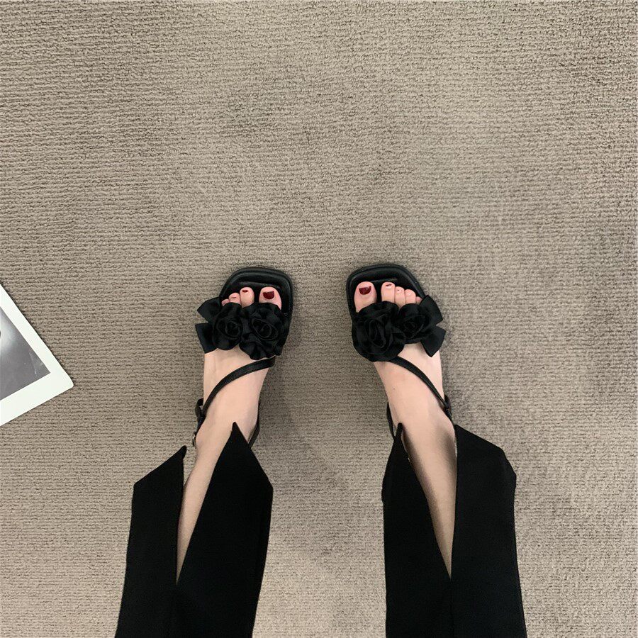 Летние сандалии, подходит с юбкой, сексуальная обувь, слайдеры, французский стиль, в цветочек