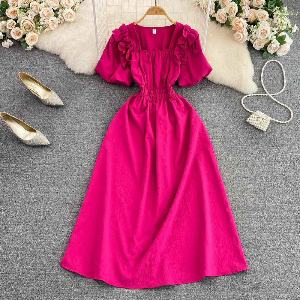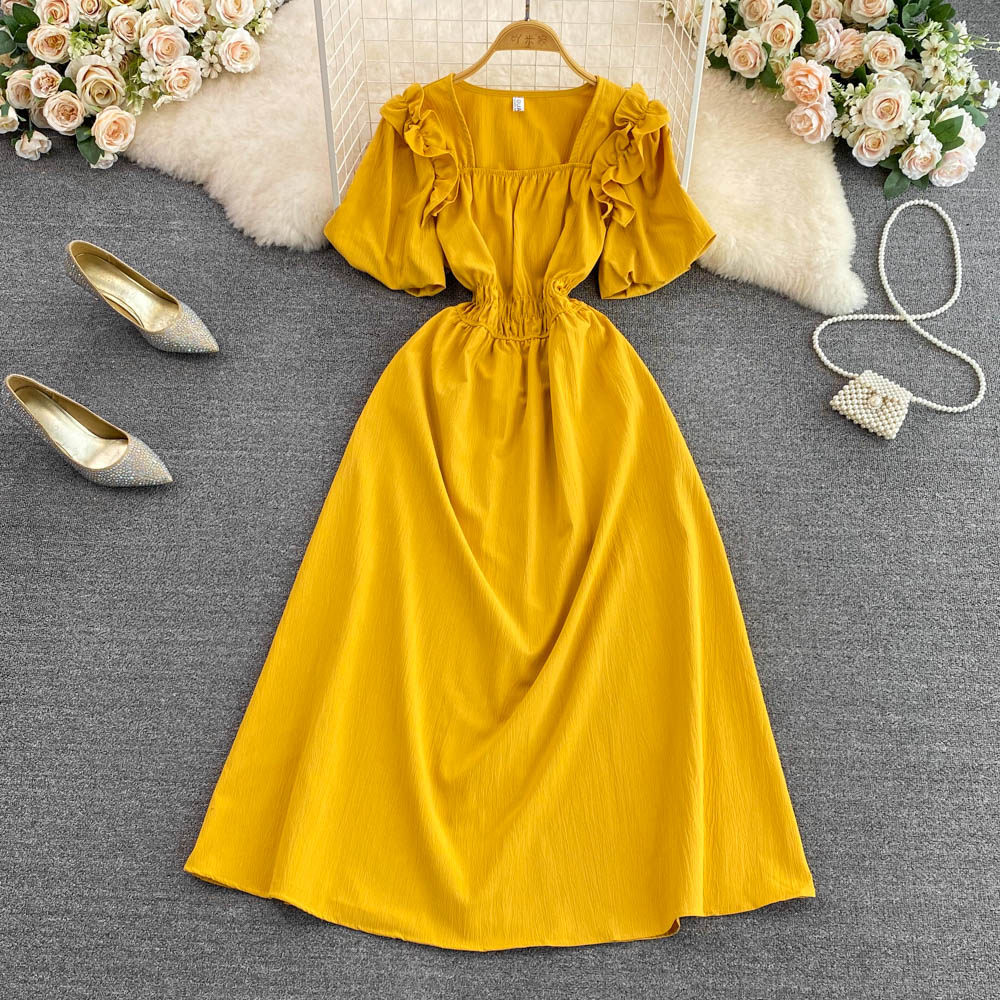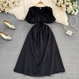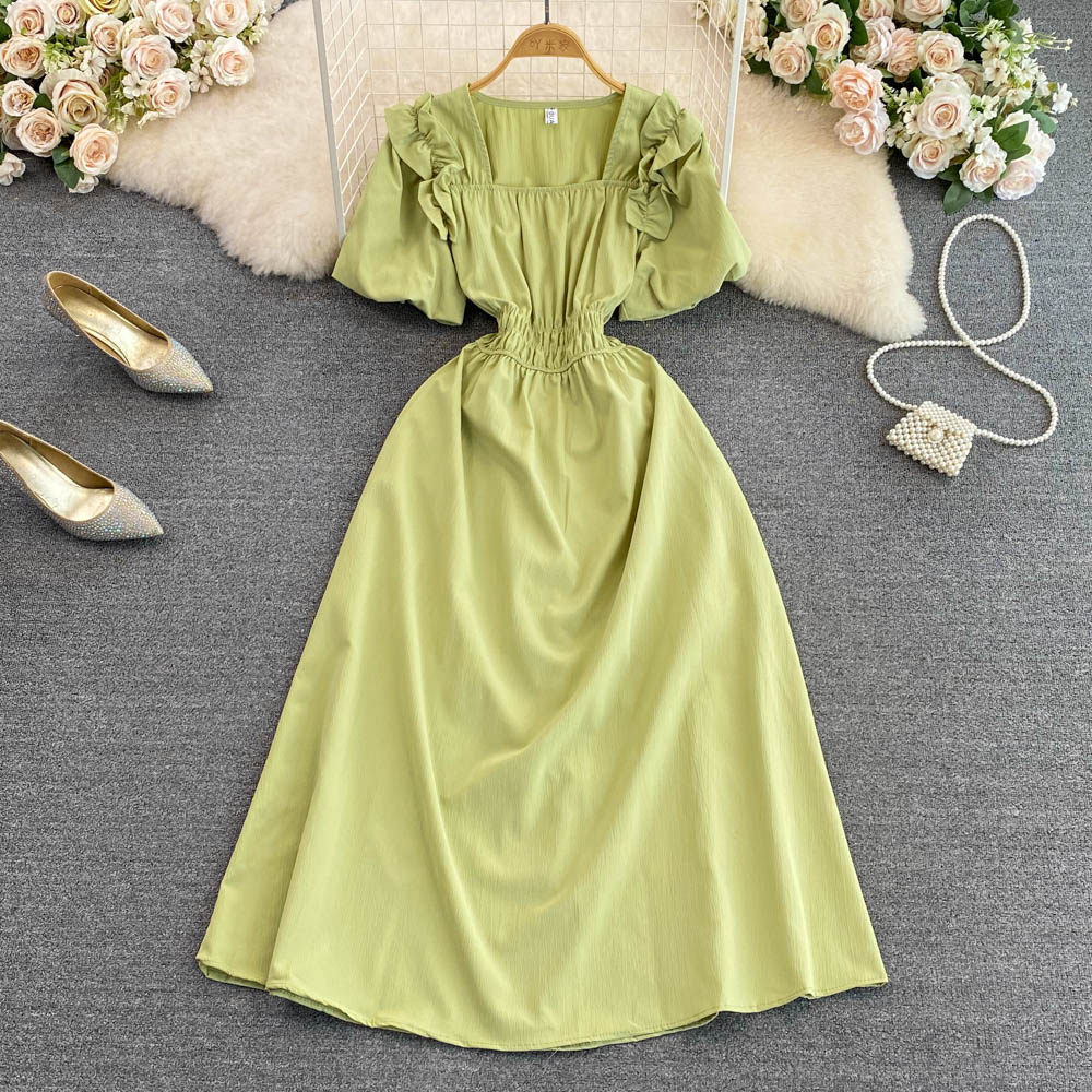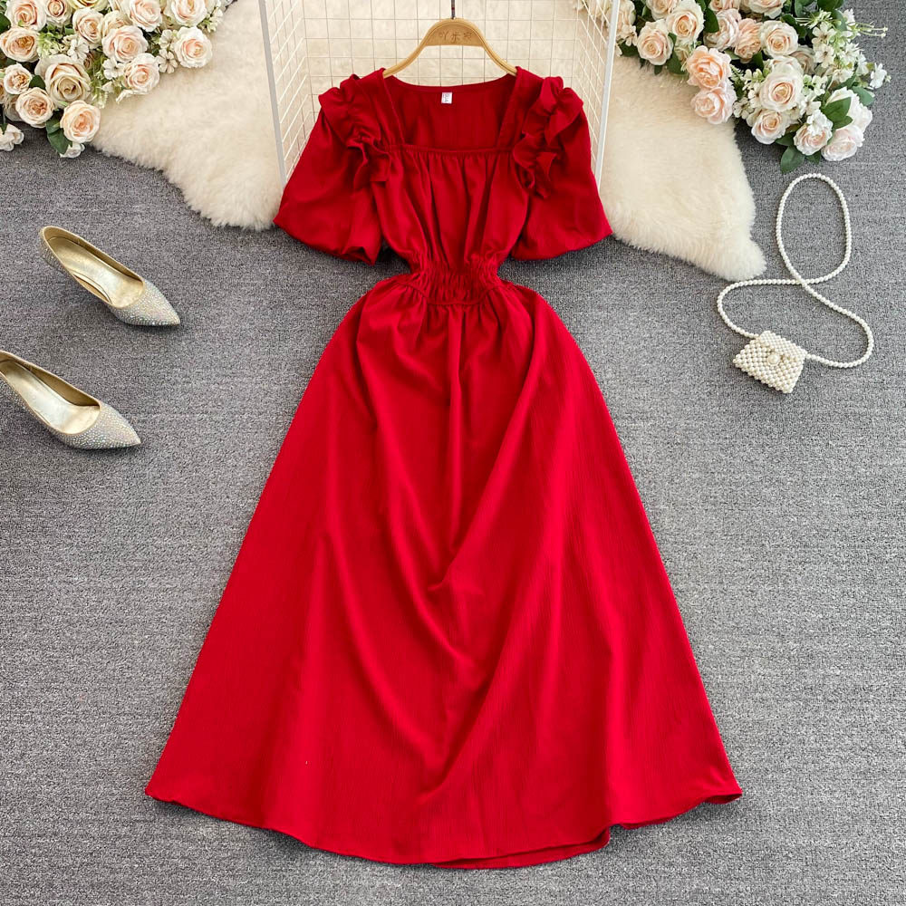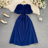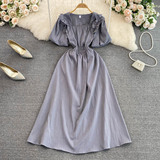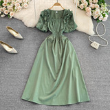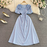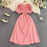 Ретро приталенный корсет, элегантное платье, длинная юбка, французский стиль, квадратный вырез, короткий рукав, А-силуэт