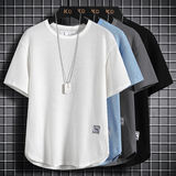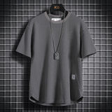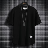 Шелковая однотонная японская тонкая футболка с коротким рукавом, китайский стиль, оверсайз