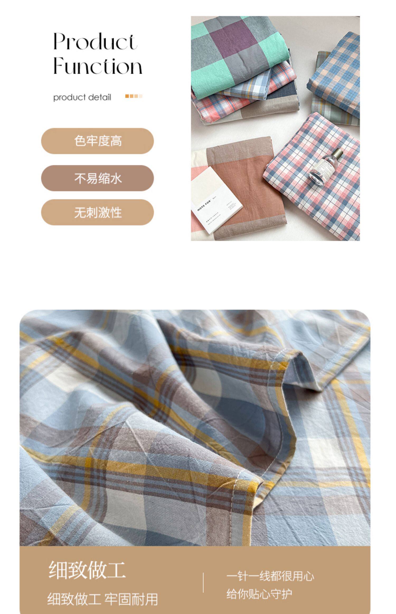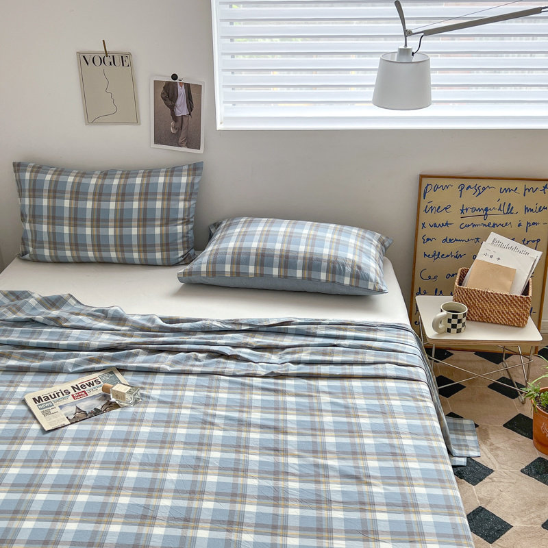 Ins целый хлопковый хлопковой хлопковой кровать один кусок 100 Pure Cotton Jianxi Lan Grid Student Dormitory One Three -Ciece Cust