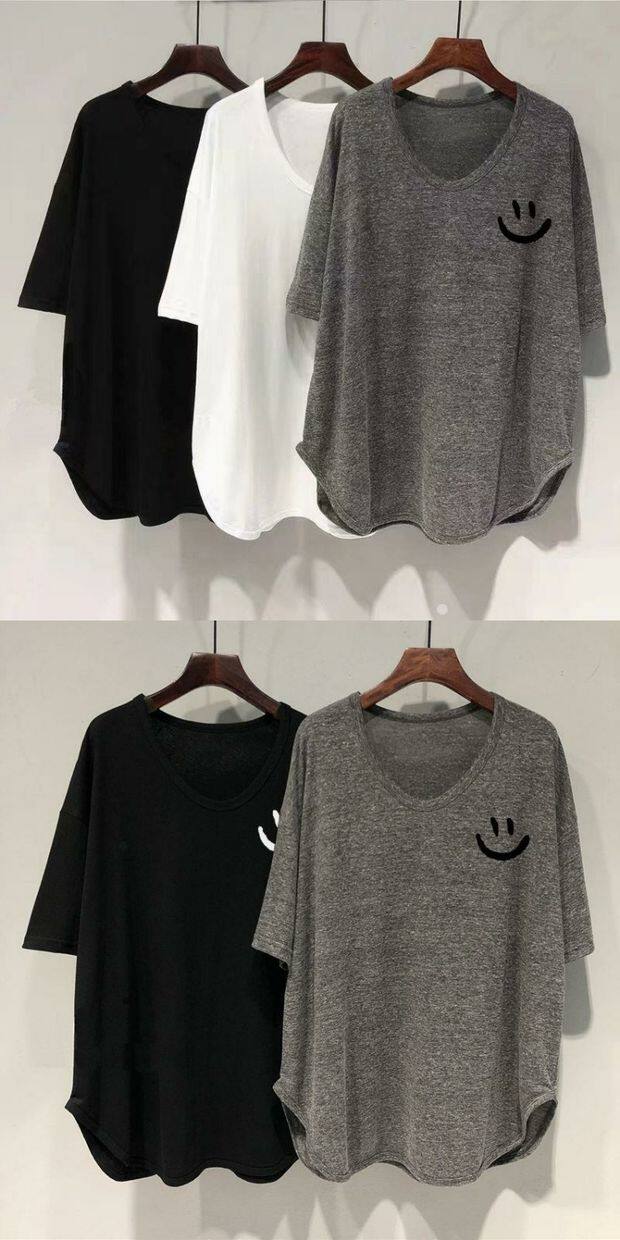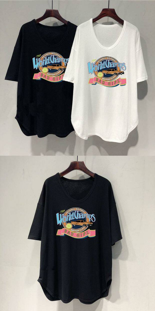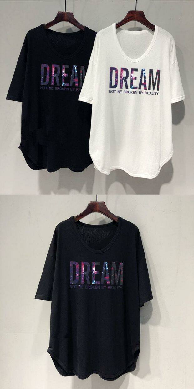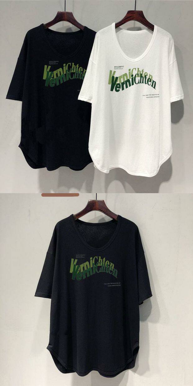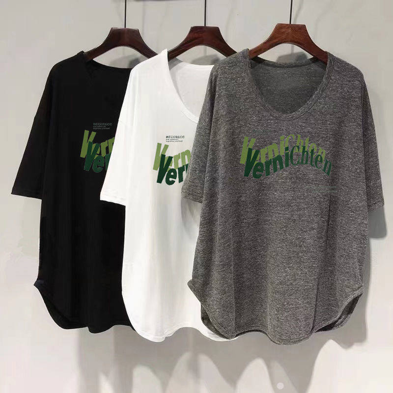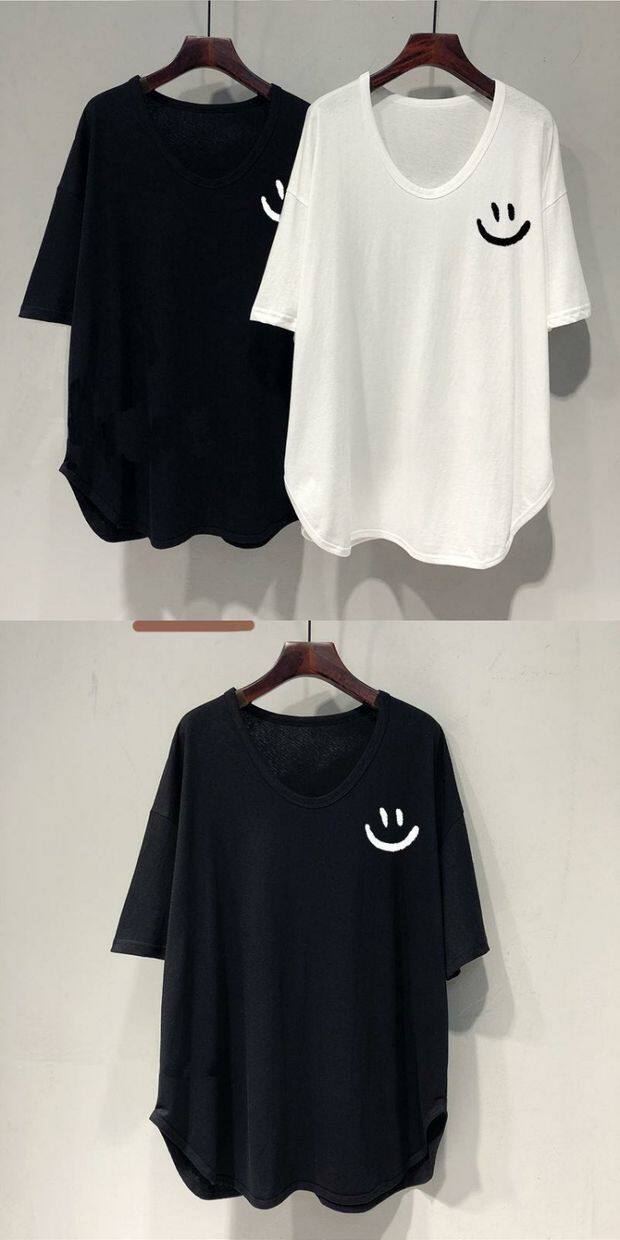 Длинная летняя футболка, оверсайз, средней длины