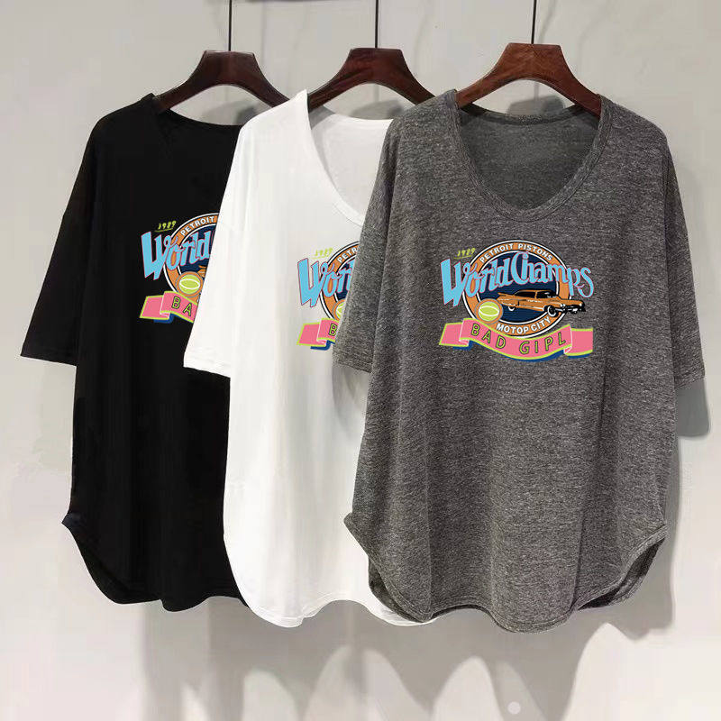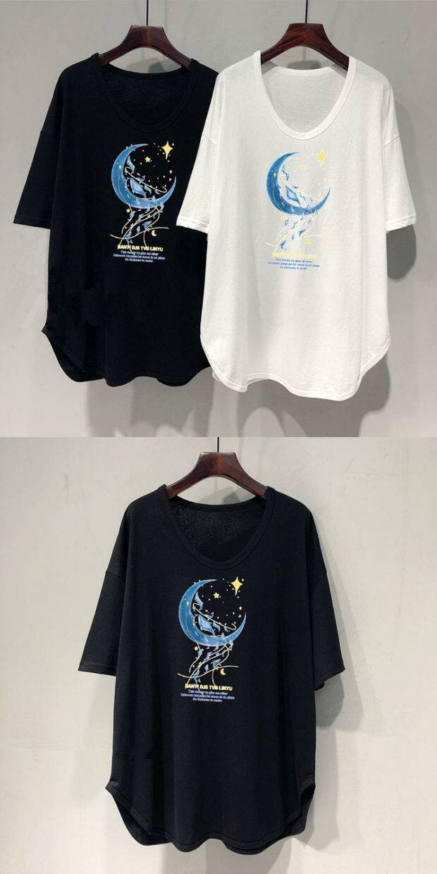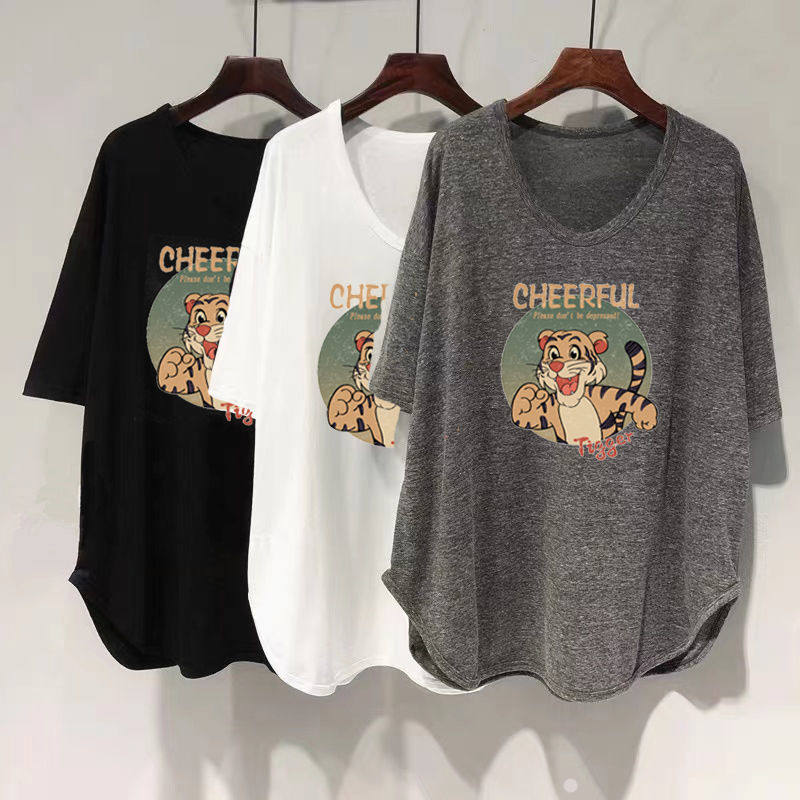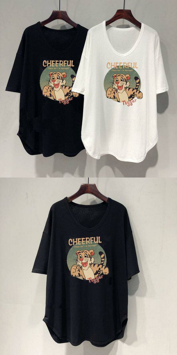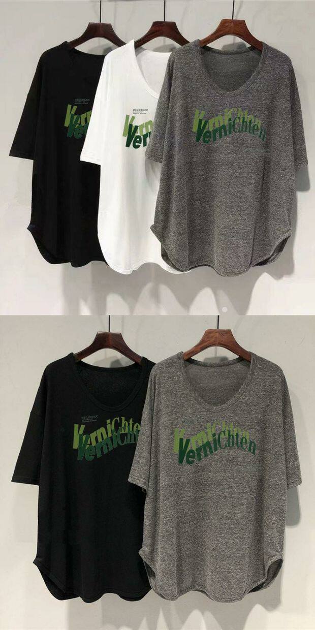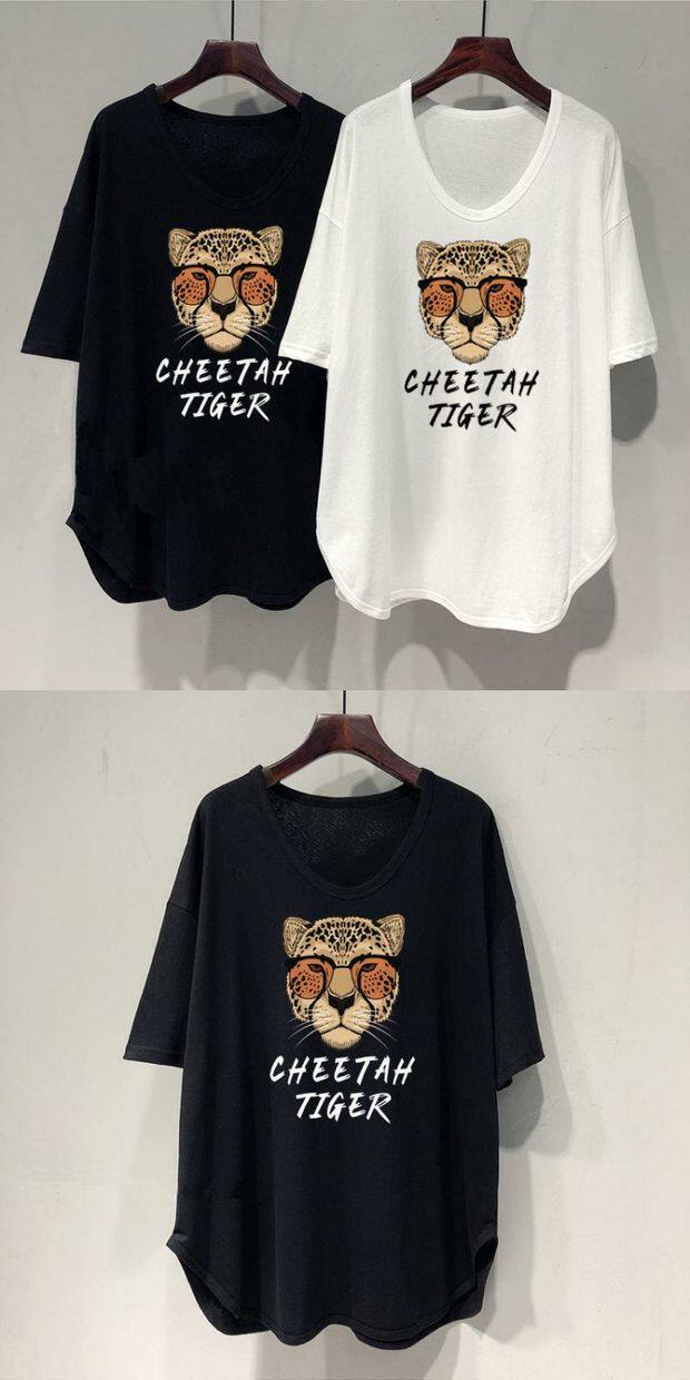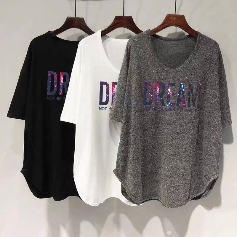 Длинная летняя футболка, оверсайз, средней длины