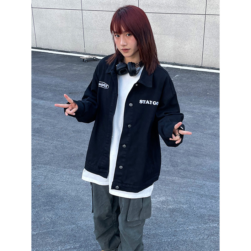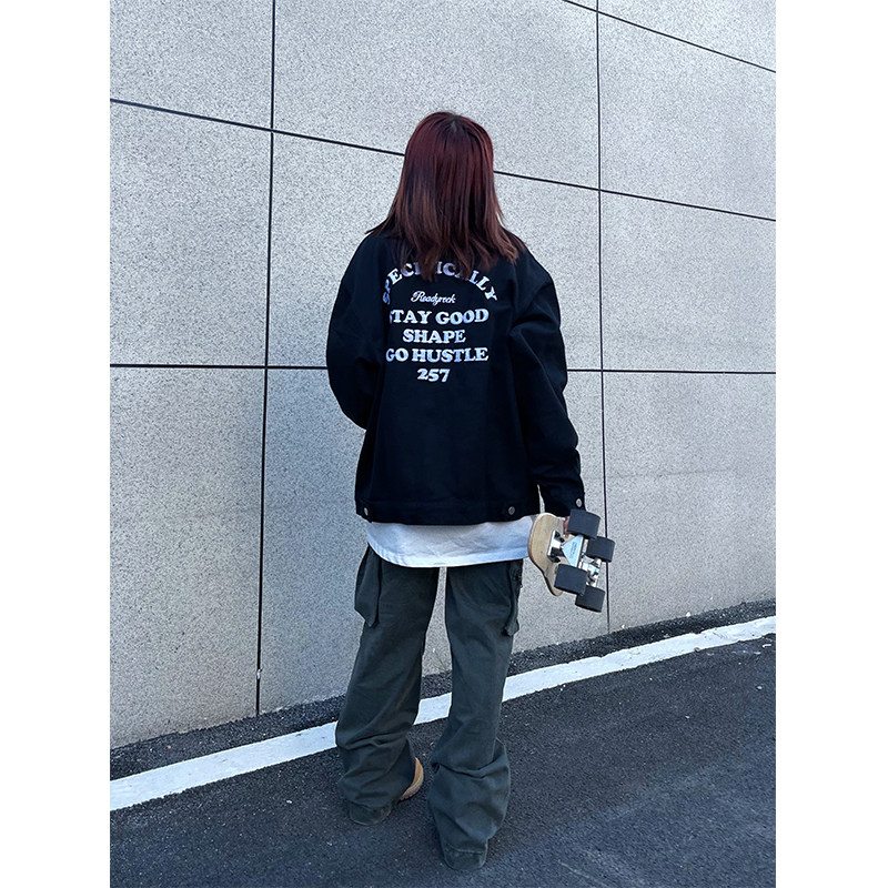 Джинсовая трендовая куртка подходит для мужчин и женщин, в американском стиле, с вышивкой, оверсайз